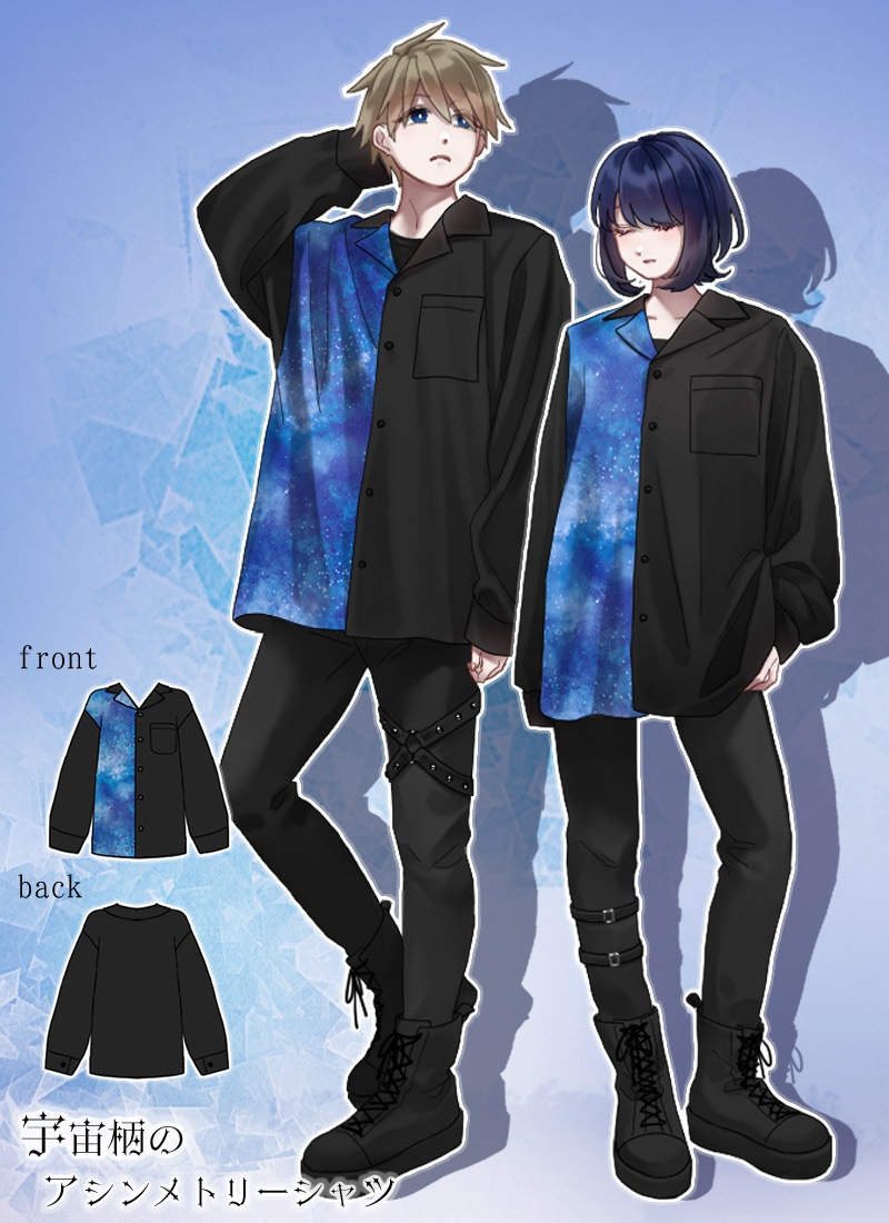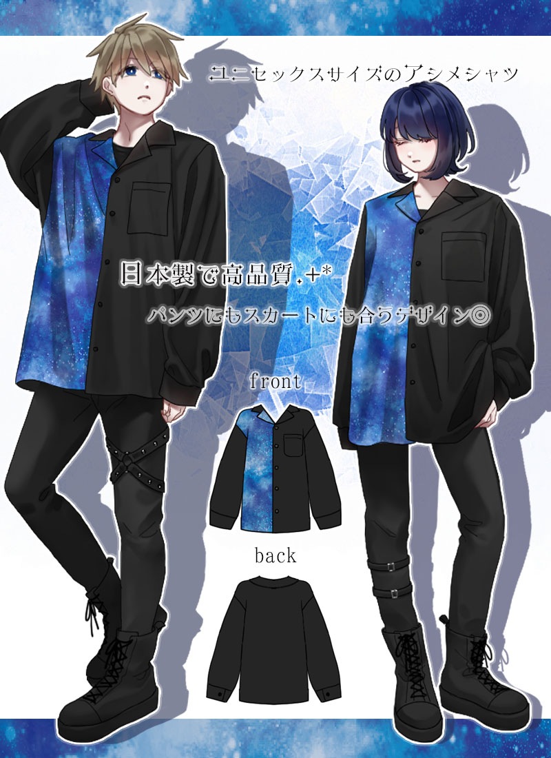 【最短即日出荷】シャツ ユニセックス トップス 宇宙 アシンメトリー たかみん 国産 日本製*Favoriteオリジナル*宇宙柄アシメシャツ【2025年4月上旬予約開始】商品コード:fm065