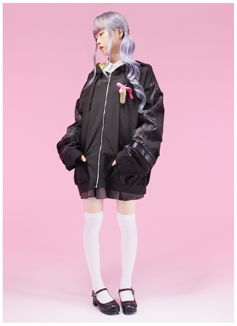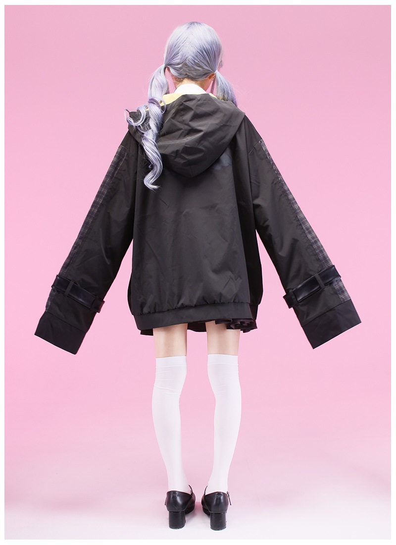 ・腕部分にはスカートとおそろいのチェック柄を使用したあしらい