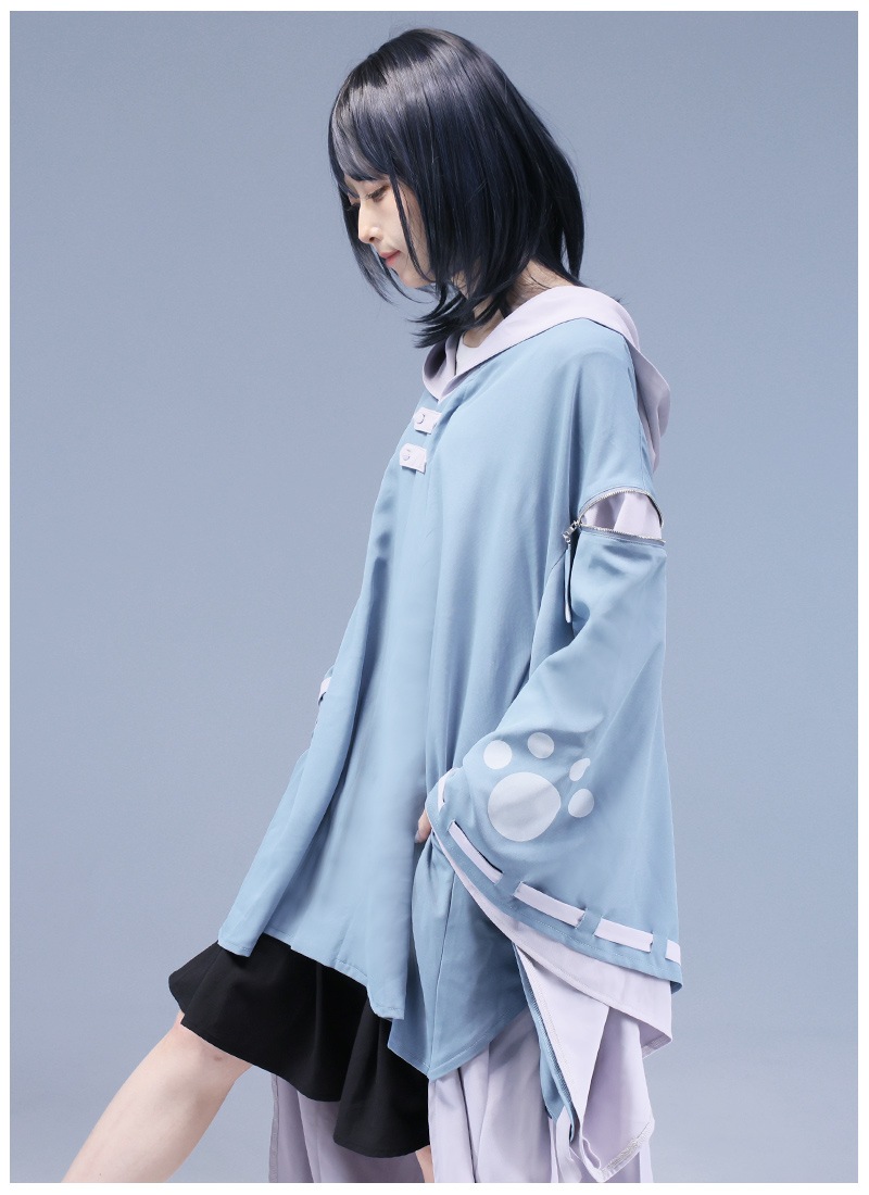 和袖の肉球プリントとはしごリボンベルトがアクセント