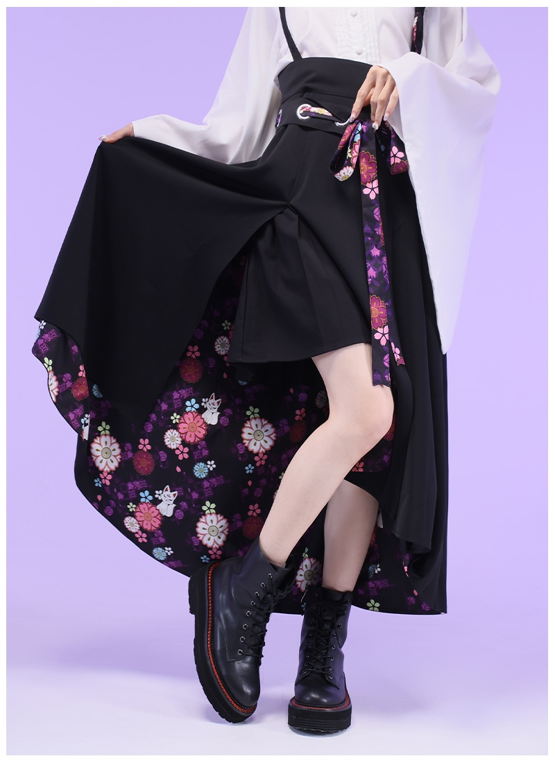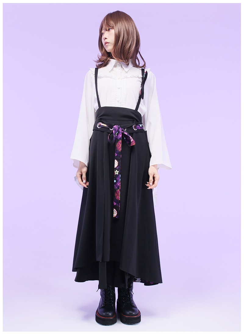 サスペンダースカート:肩ベルト22cm-30cm 着丈短78cm 長90cm(肩ベルト含めず) ウエスト43-47cm