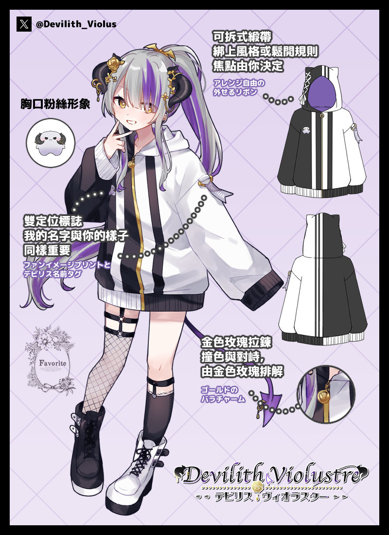 ・肩にはファンイメージプリントとデビリスとの名前タグ