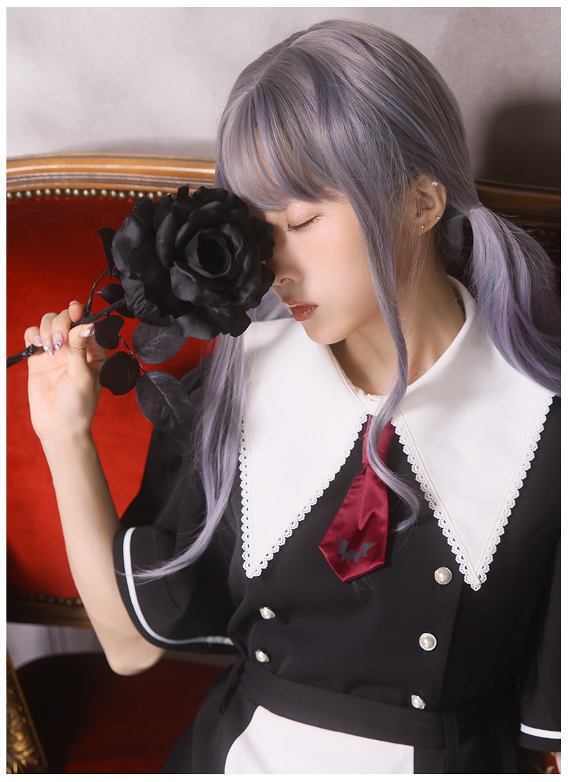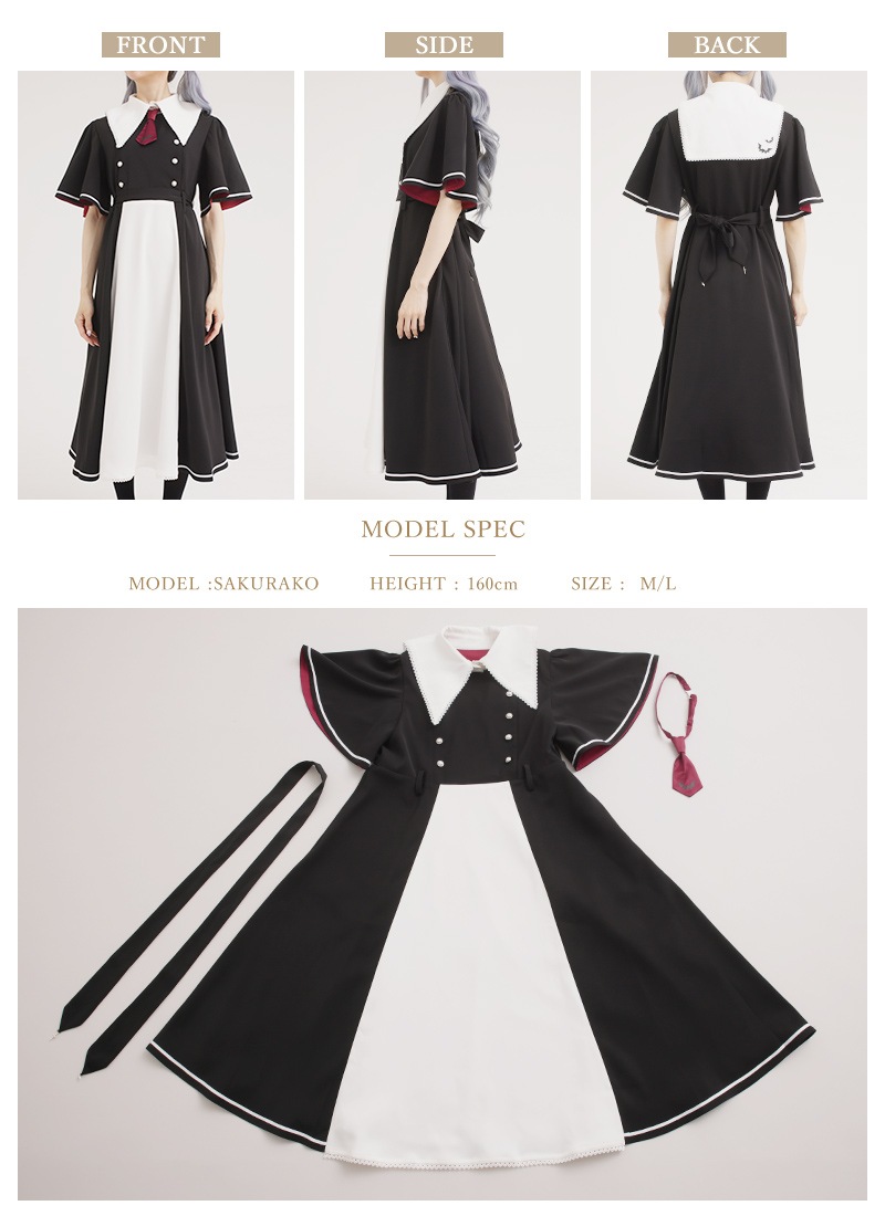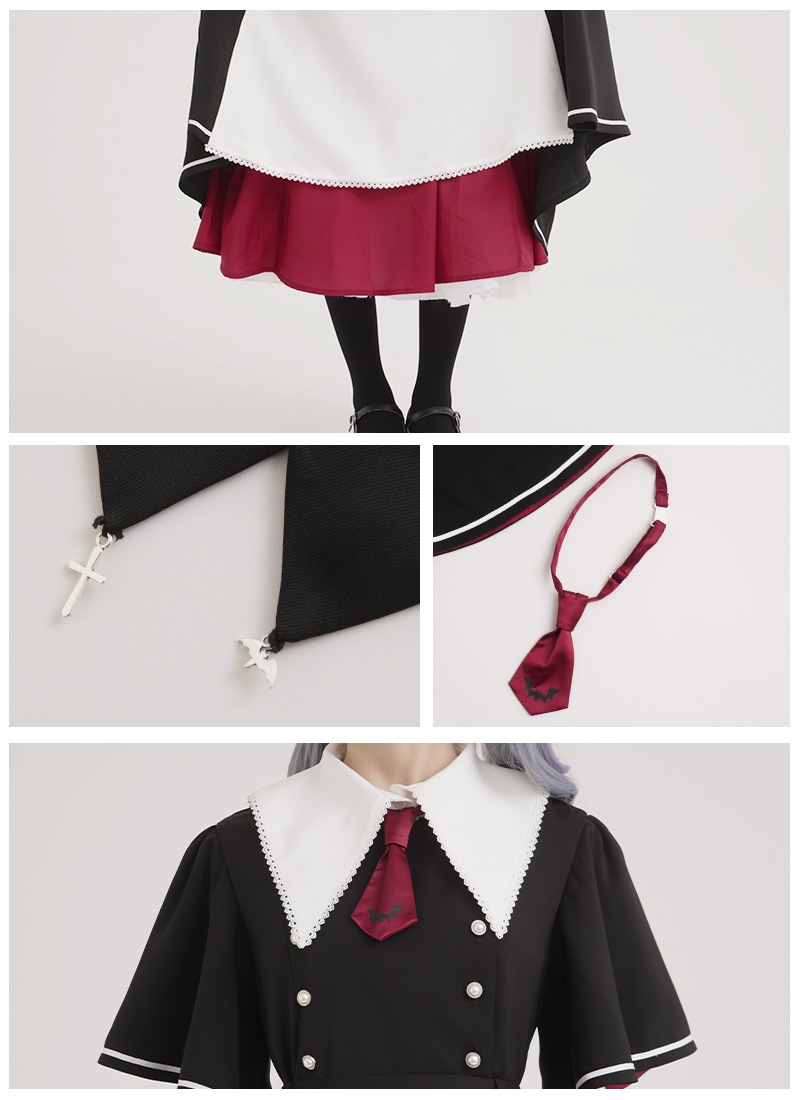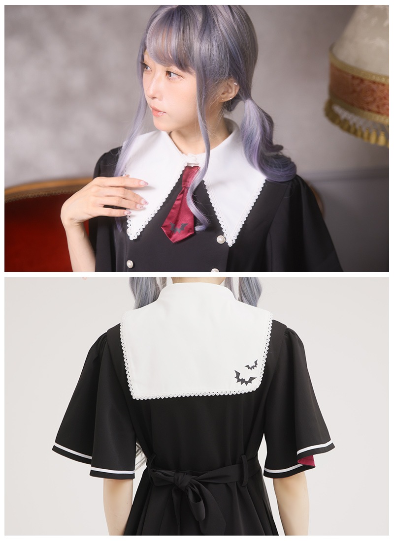 ネクタイやリボンなど所々に散りばめられたコウモリモチーフがゴシックな可愛さ*