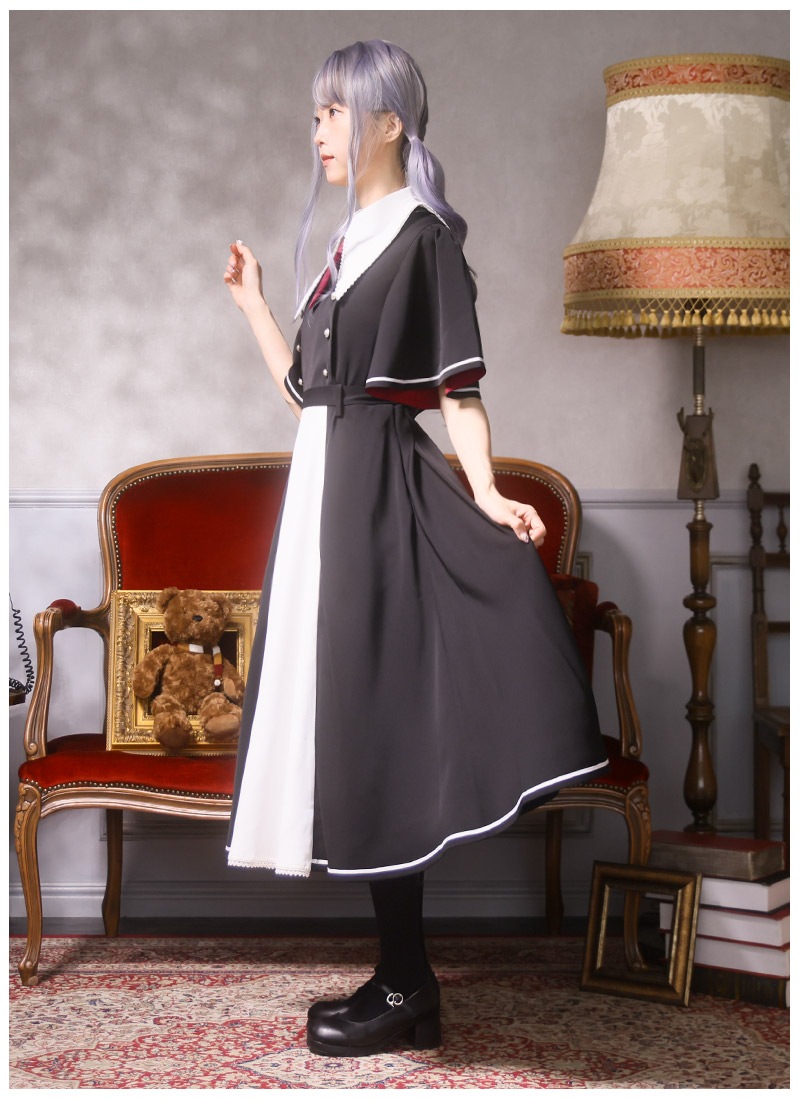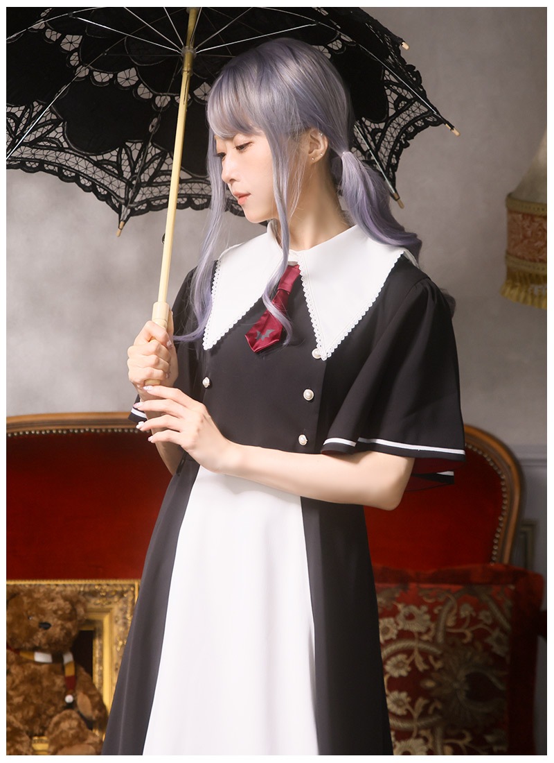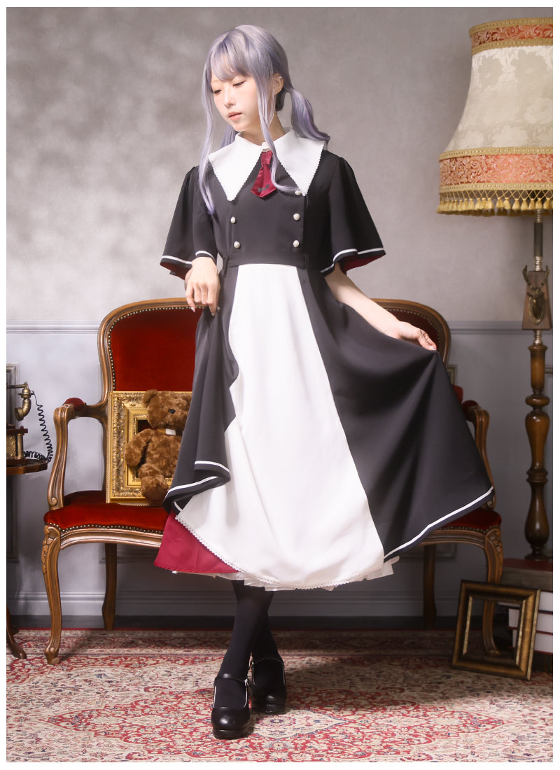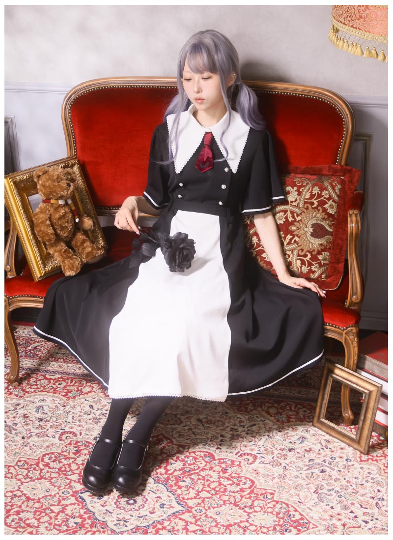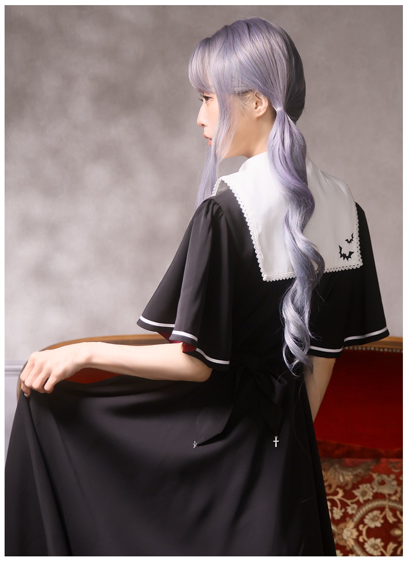ネクタイやリボンなど所々に散りばめられたコウモリモチーフがゴシックな可愛さ*