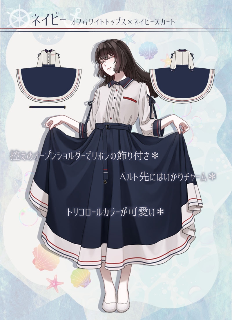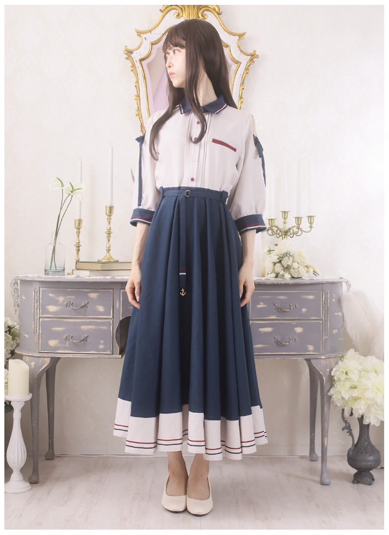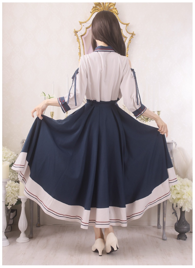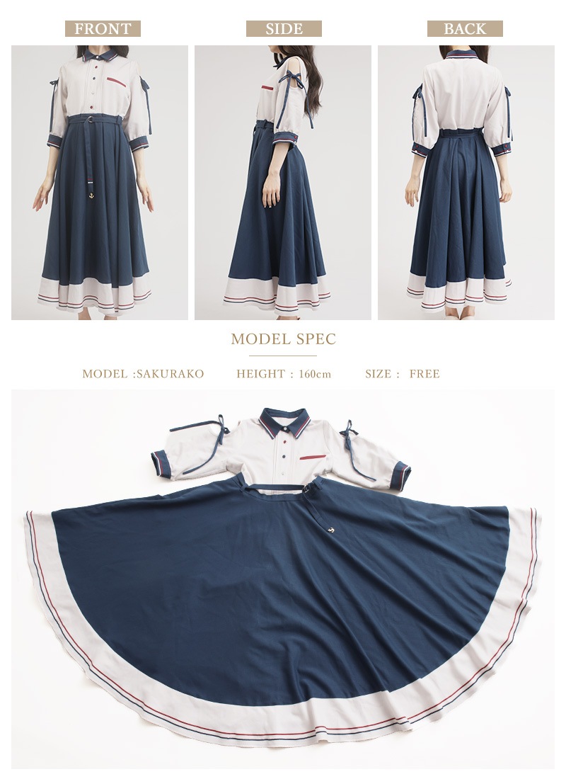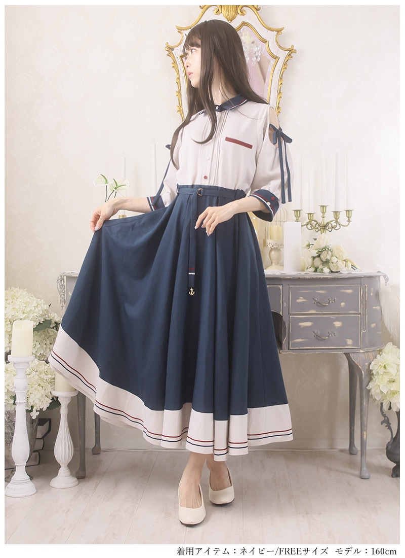 ●カラー 【ネイビー:トップス部分オフホワイト×スカート部分ネイビー】【オフホワイト:トップス部分ネイビー×スカート部分オフホワイト】
