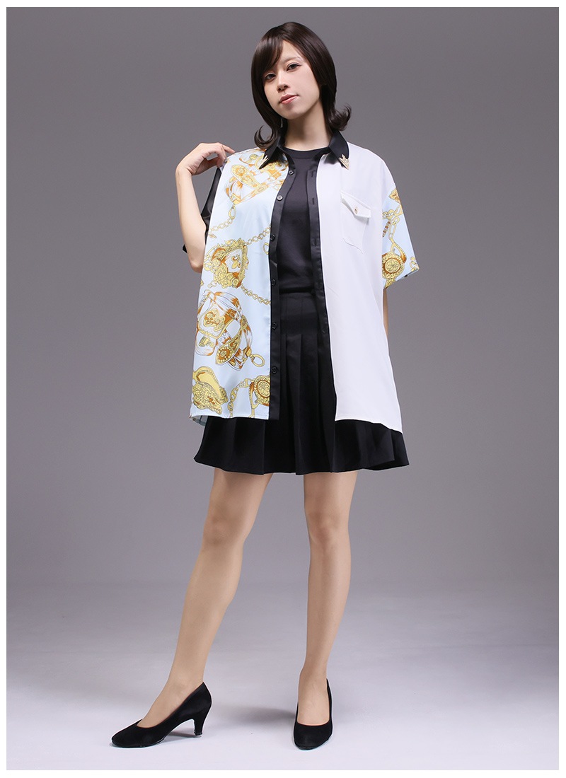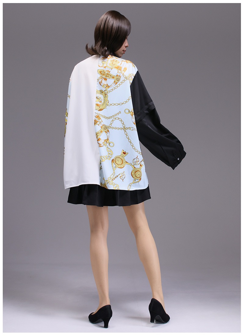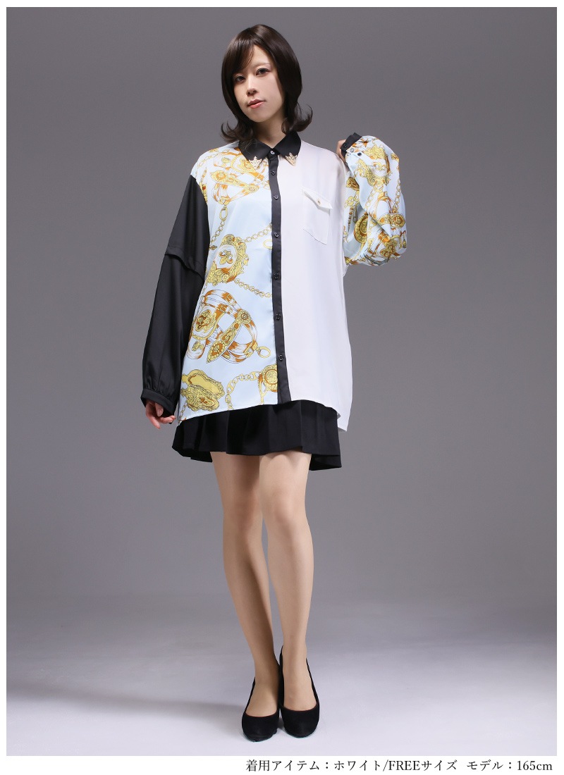 アシンメトリーに使われたスカーフ柄が存在感抜群