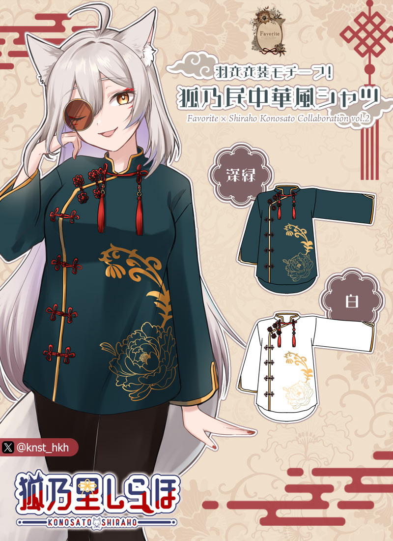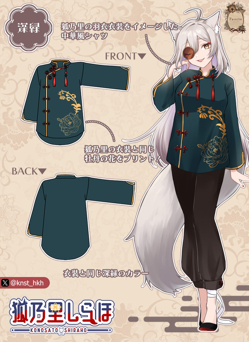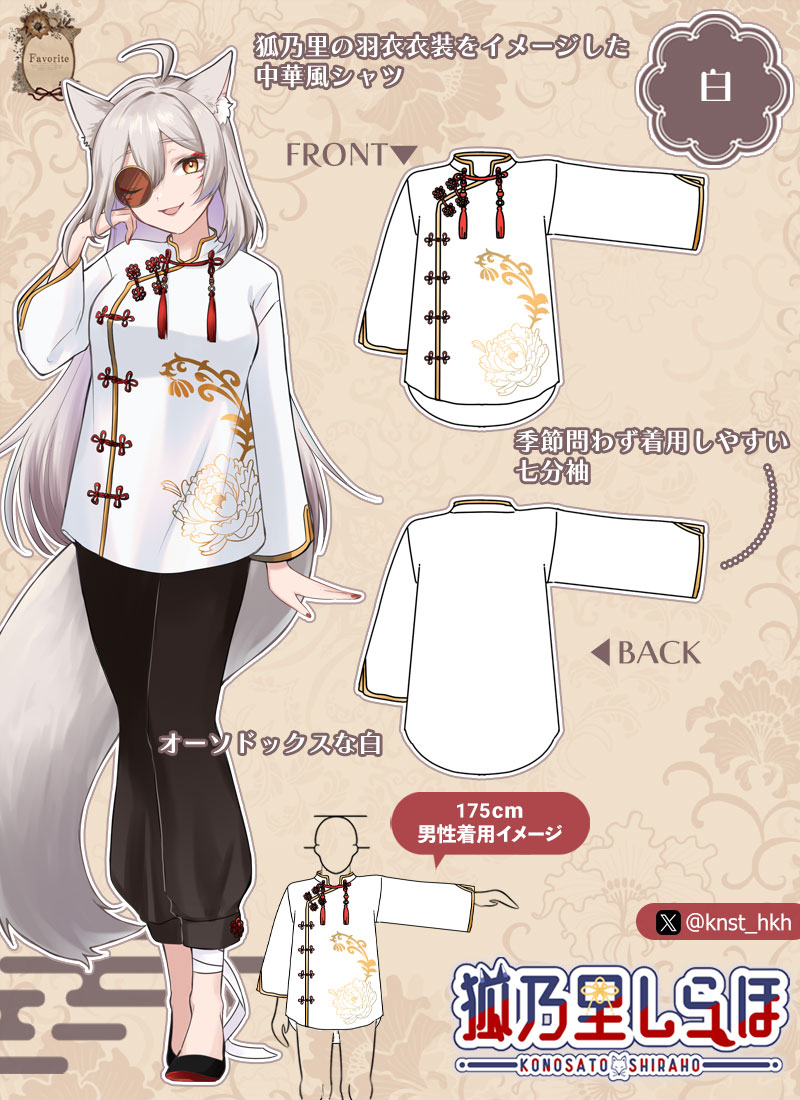 ・狐乃里の羽衣衣装をイメージした中華風シャツ