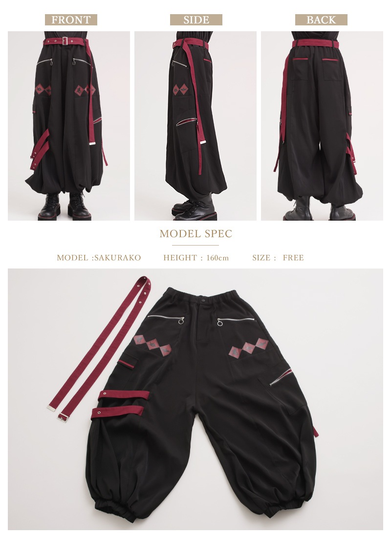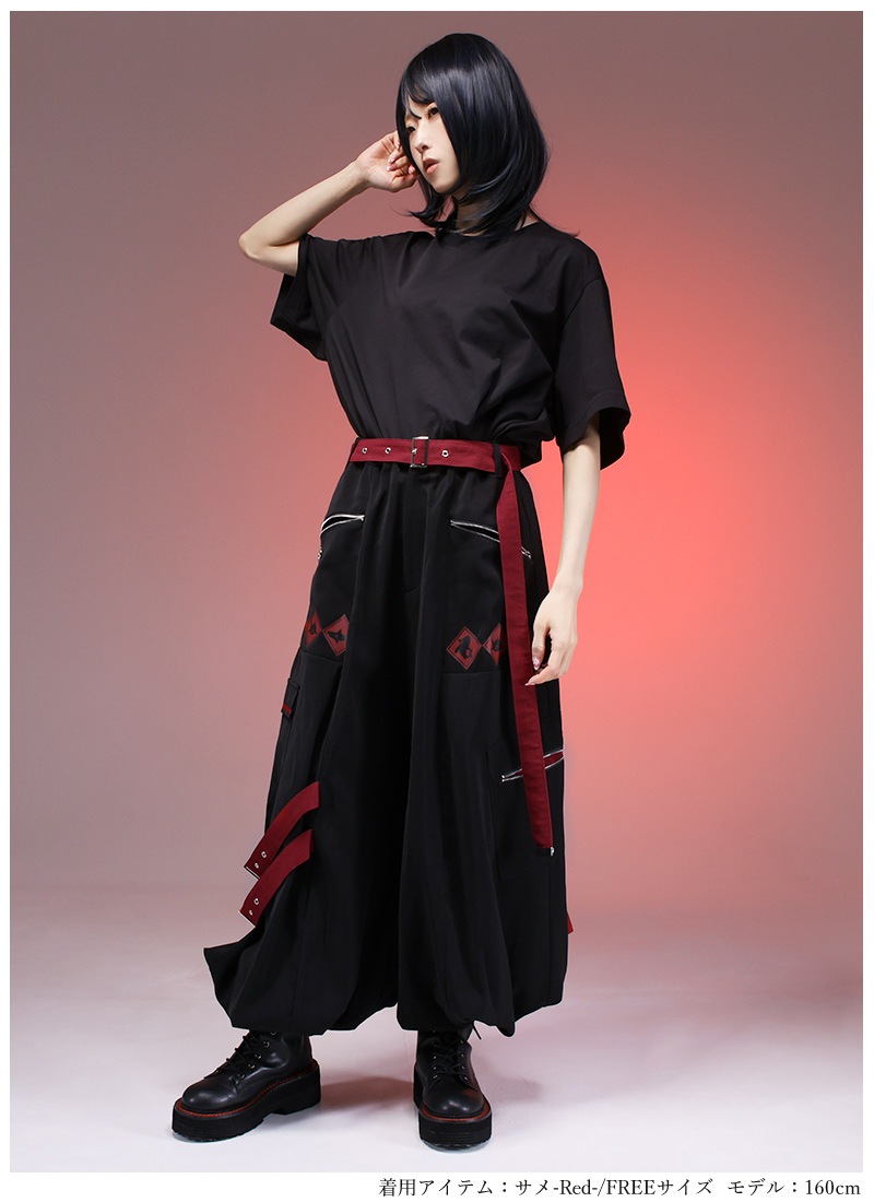 着丈100cm ウエスト35-46cm また上54cm また下46cm わたり42cm 裾口17cm