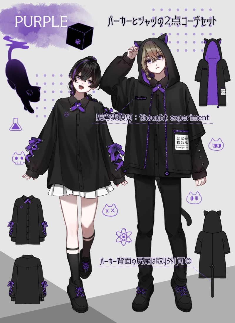 パーカーのポケットには「シュレディンガーの猫」のパラドックスを表したアイコンプリント