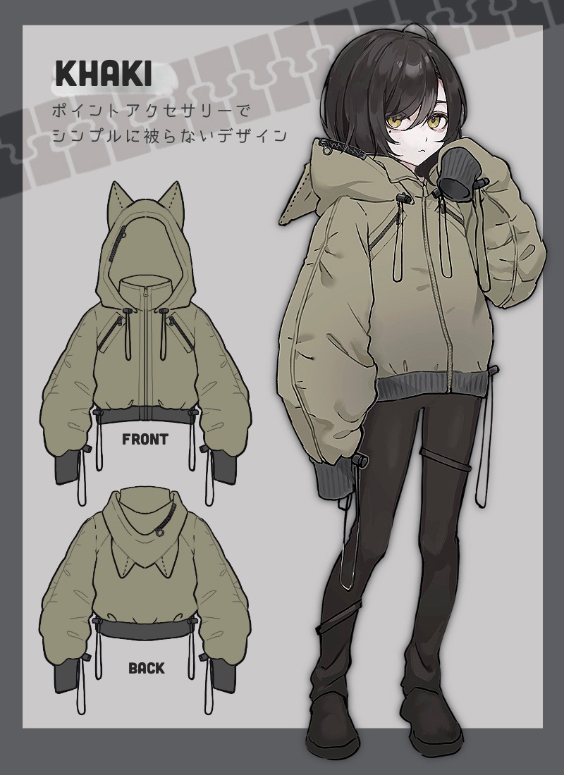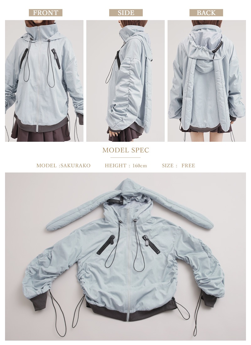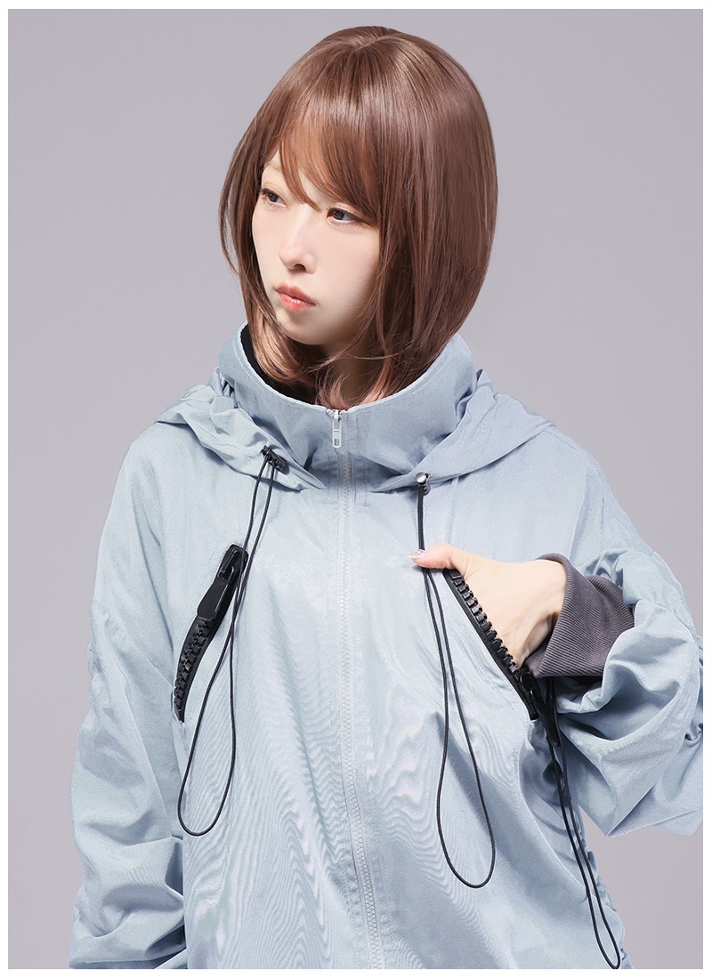 フードや胸元ファスナー、ドロストの装飾などポイントアクセサリーでシンプルだけど誰とも被らないデザイン*