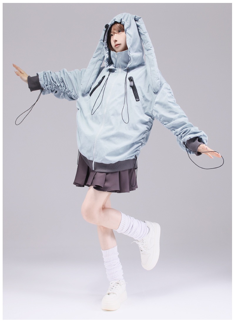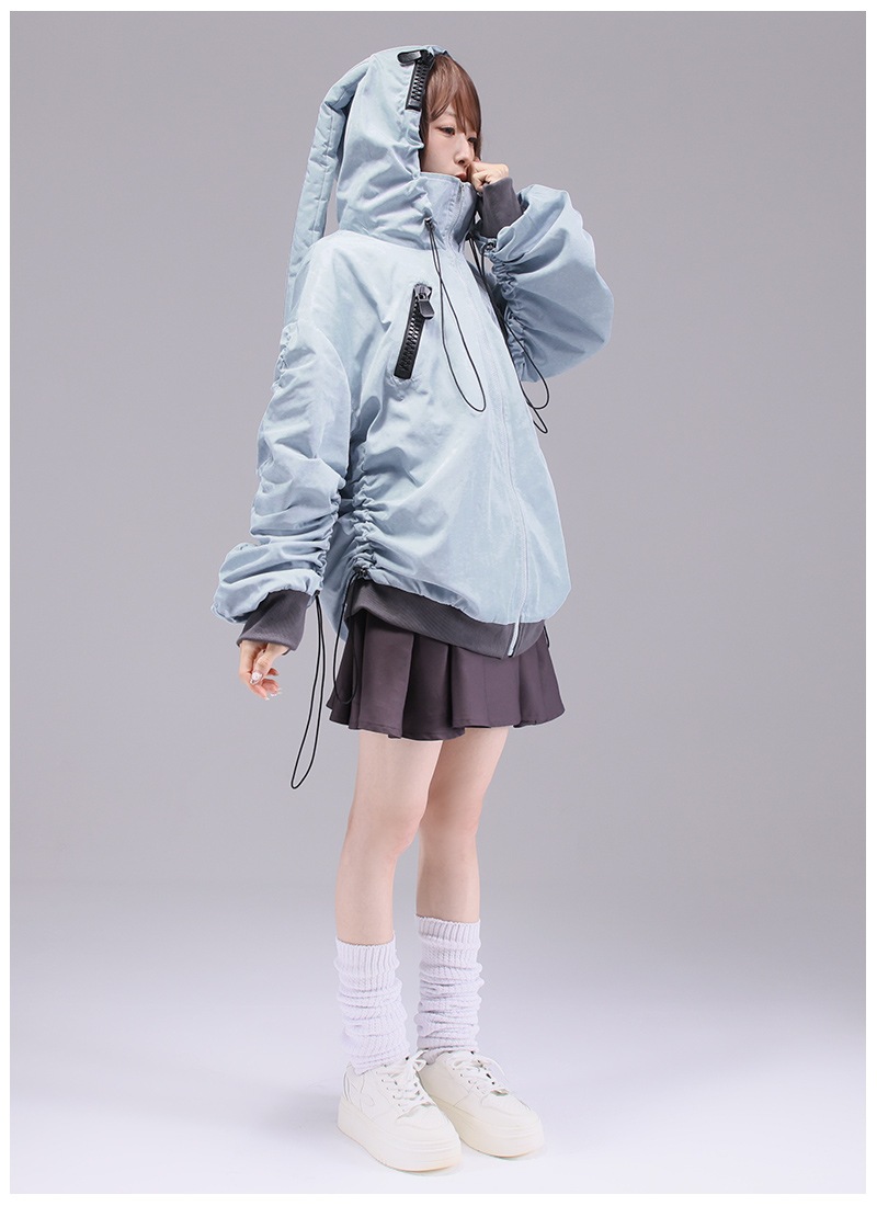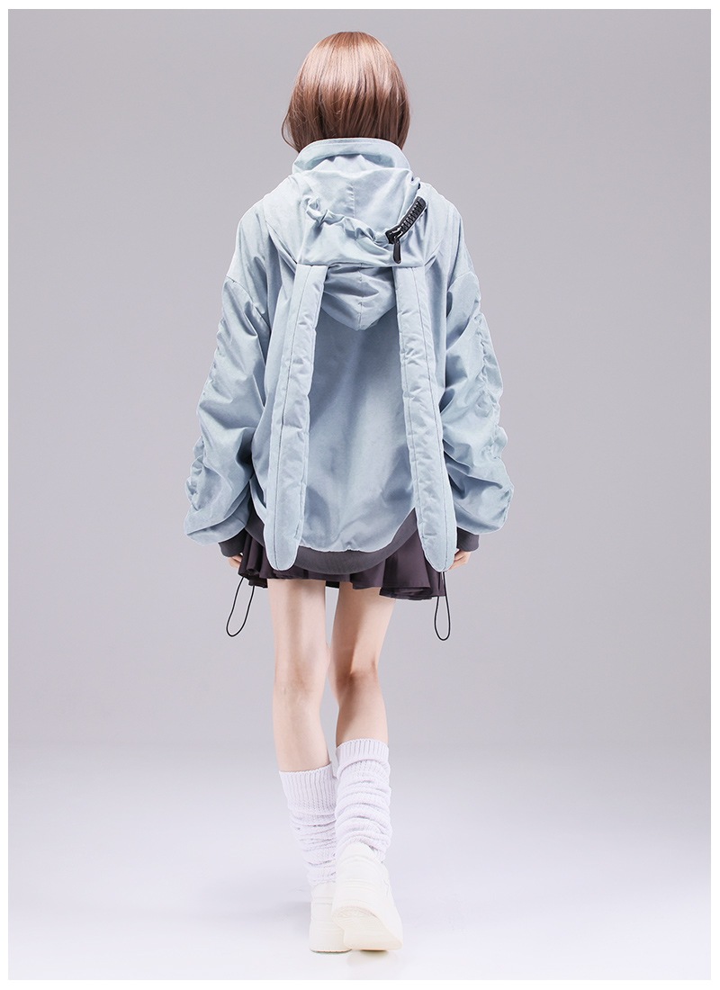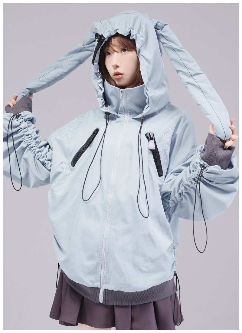 うさぎとおおかみの大きめな耳つきフードとくしゅくしゅできる大きなお袖がポイント