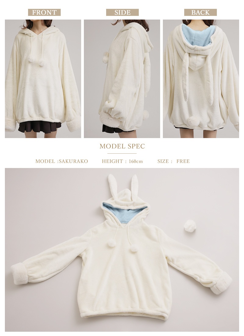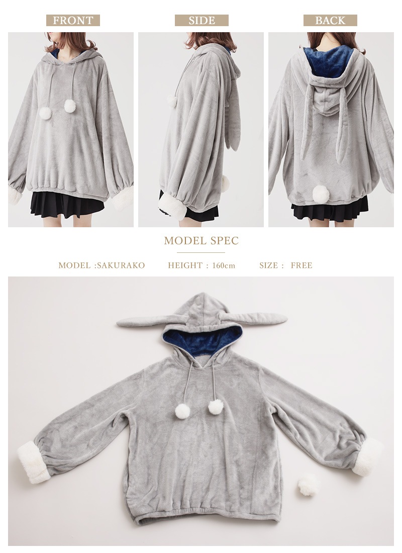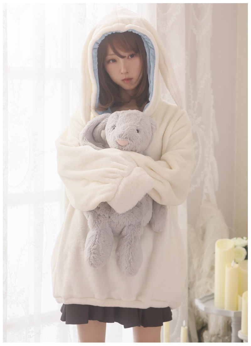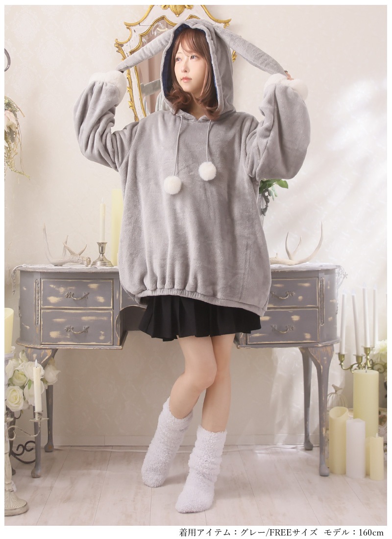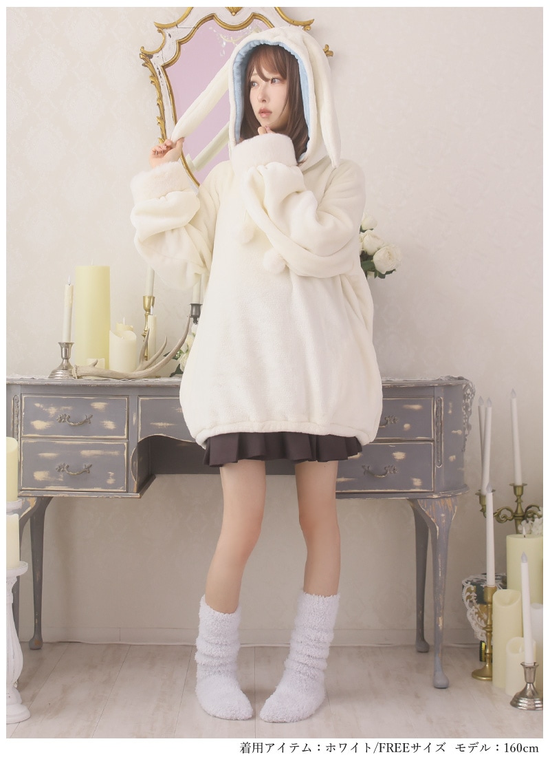 もこもこふわふわのうさ耳ルームウェアパーカー