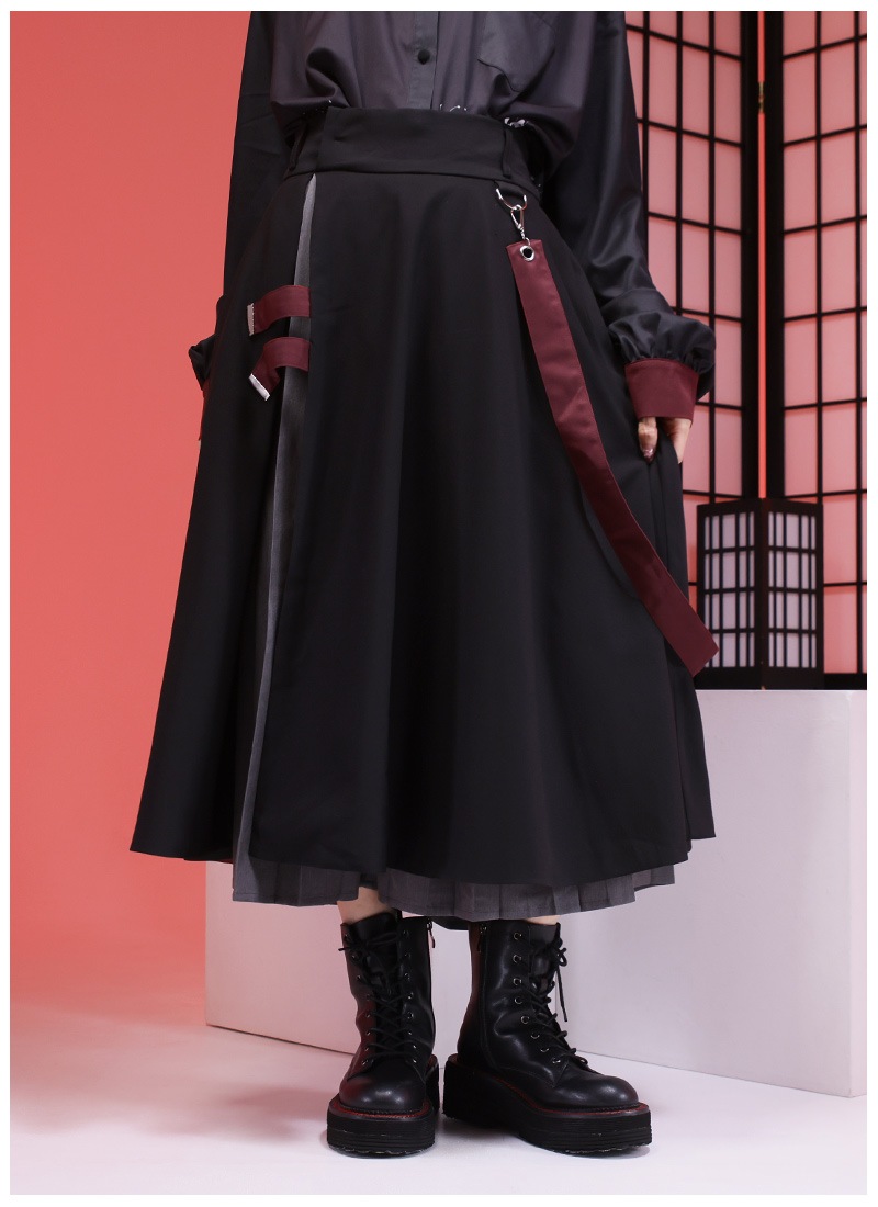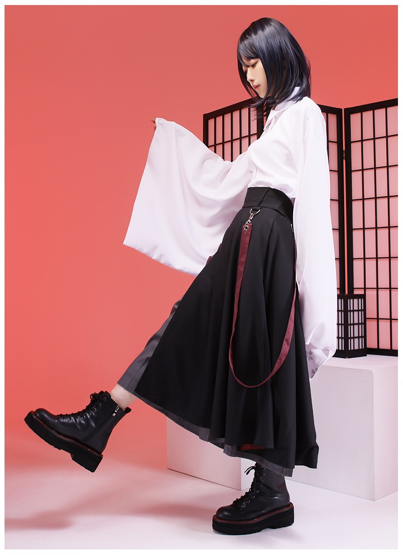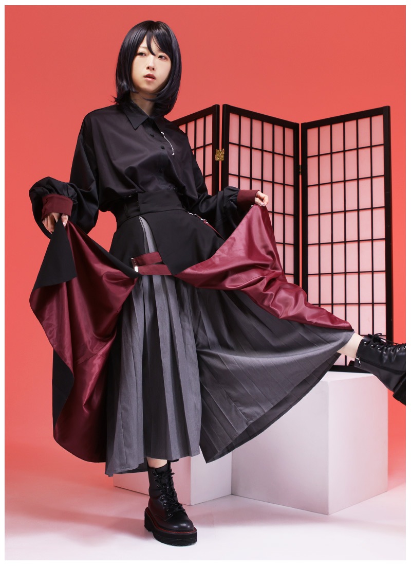 ●カラー 【彼岸花シャツ:黒×赤】【桜和袖シャツ:白】【ラップワイドパンツ:黒×赤】
