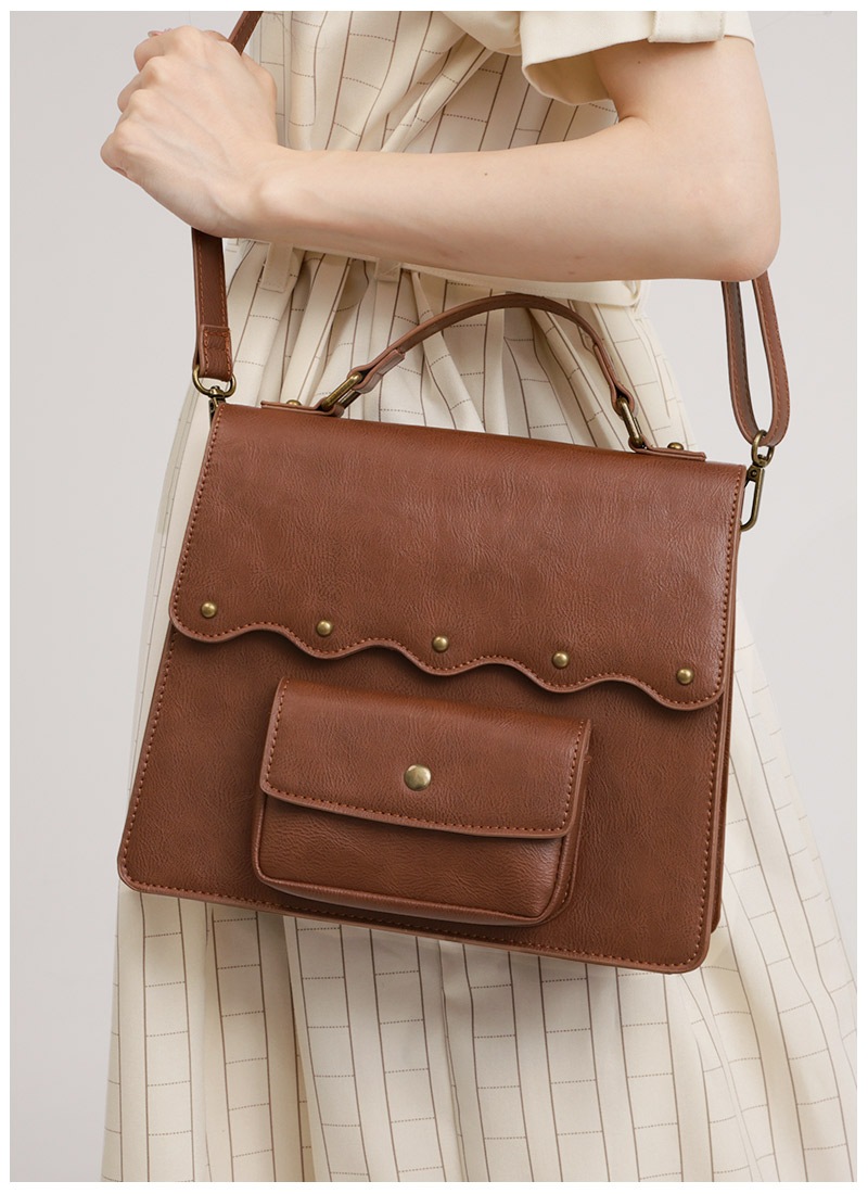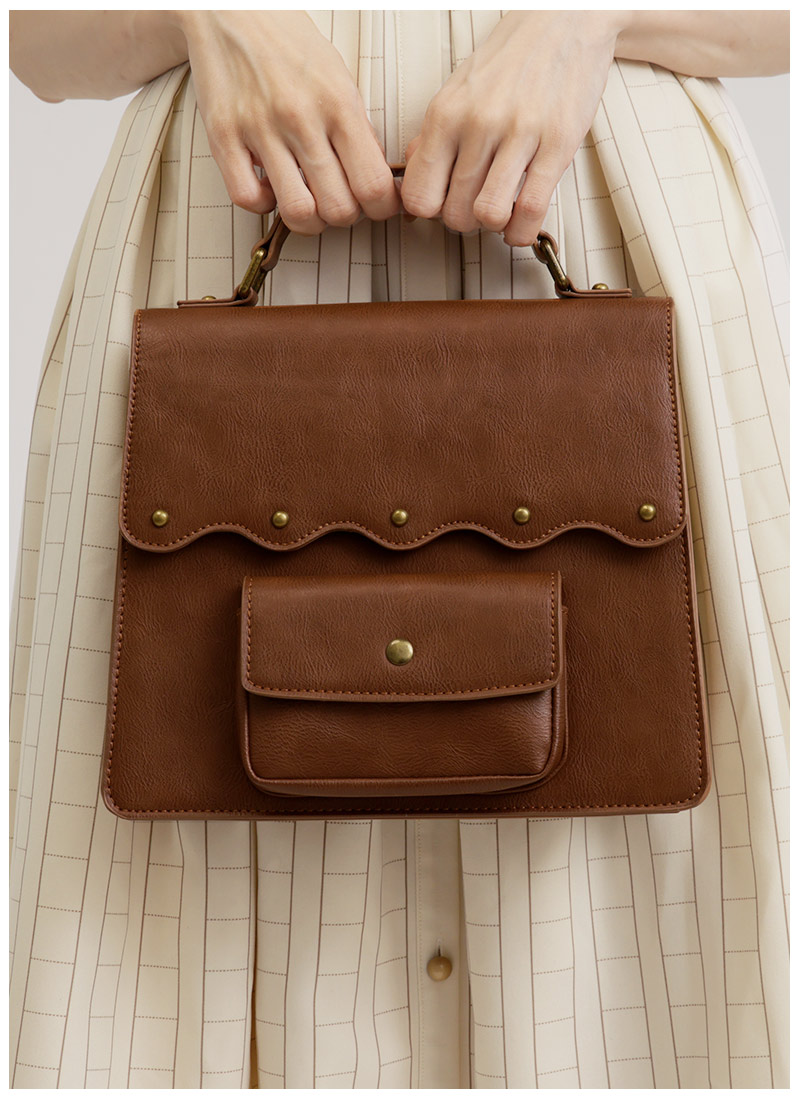 レトロブラウンのバッグの裏地はワンピースと同じ原稿用紙柄*