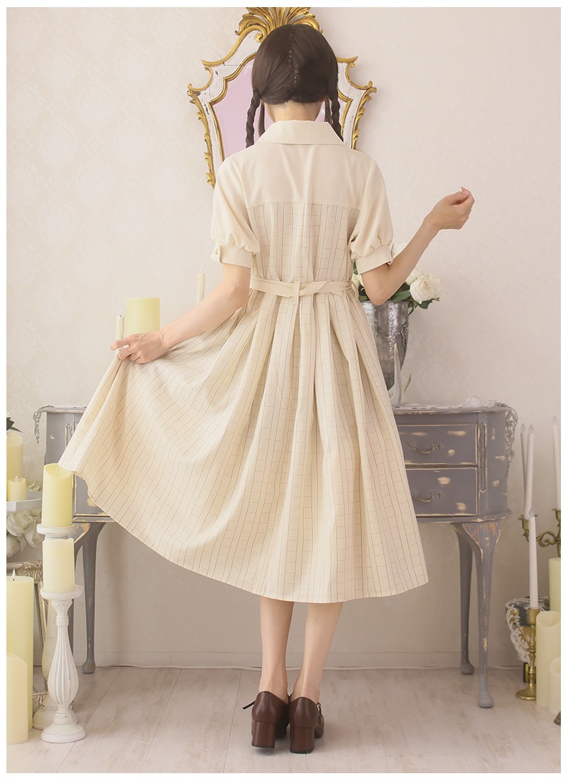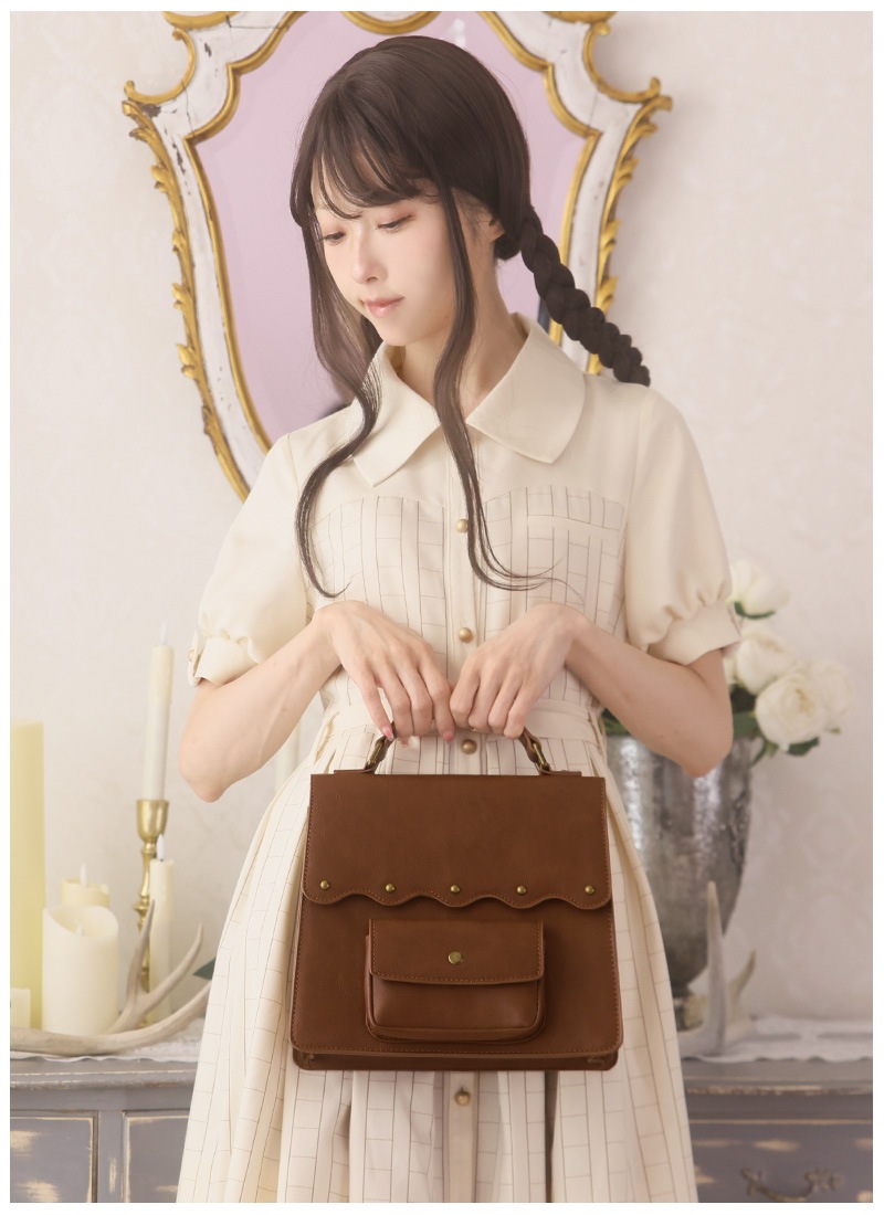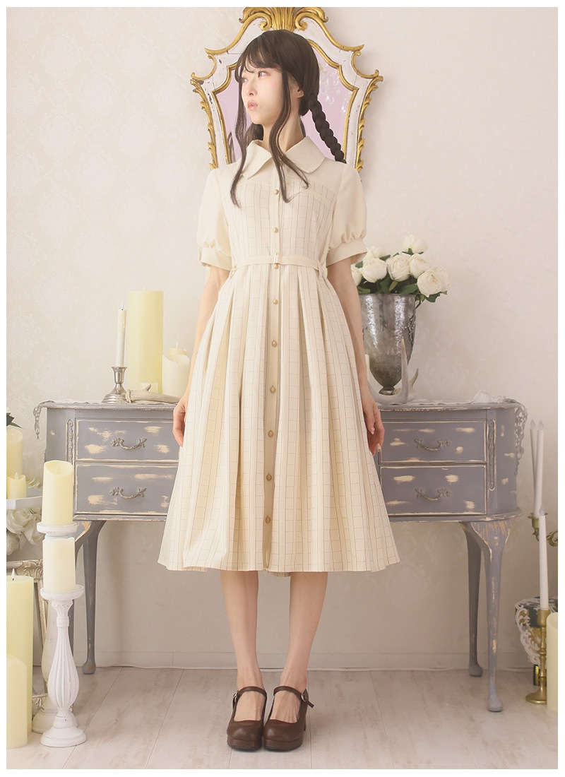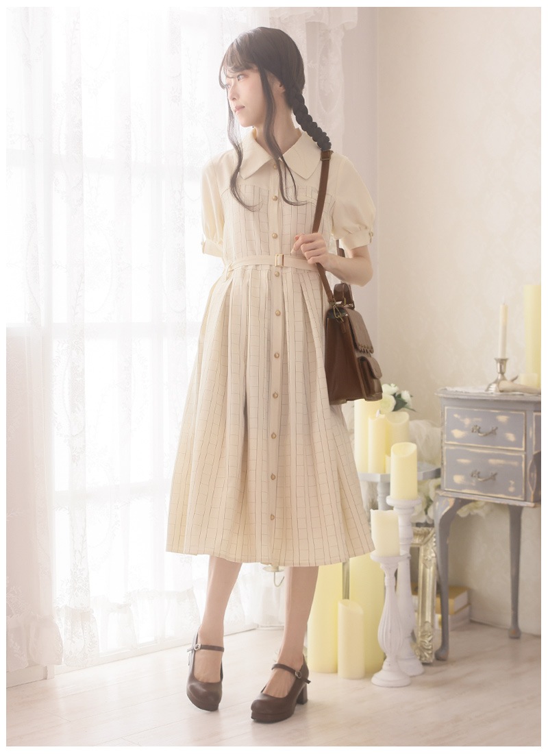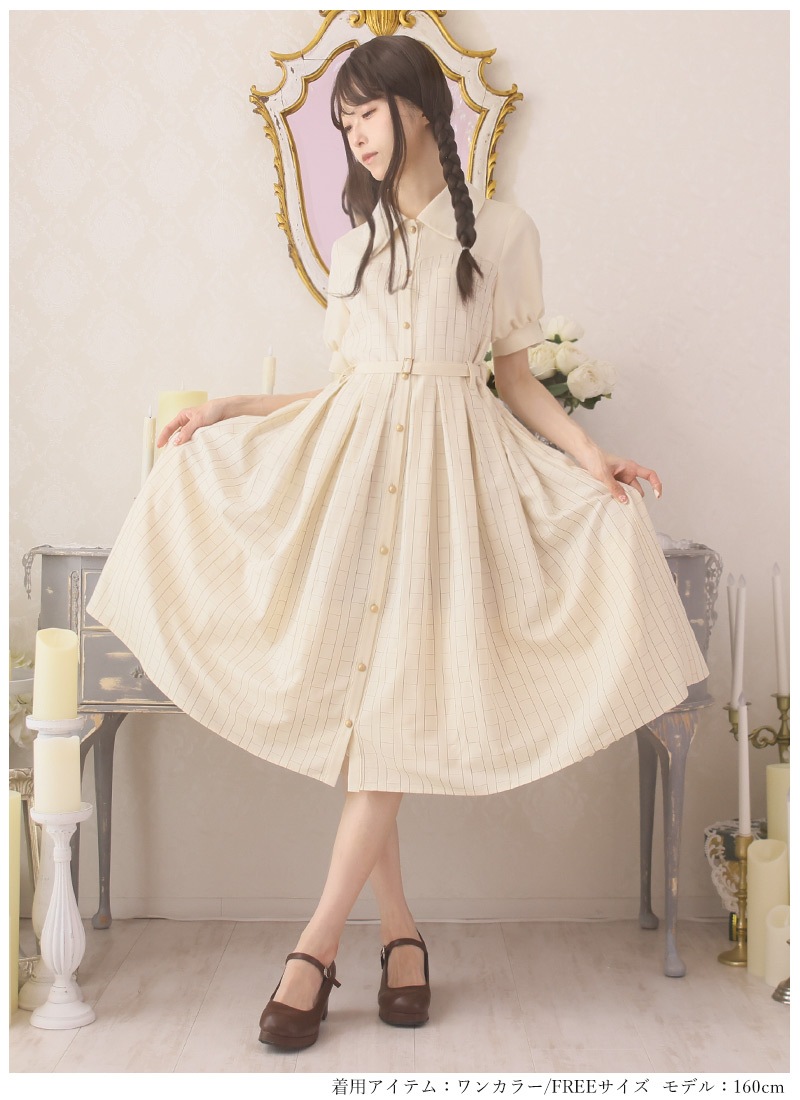 ●カラー 【ワンピース:ベージュ】【ペチコート:グレー×オフホワイト】【バッグ:ブラウン】