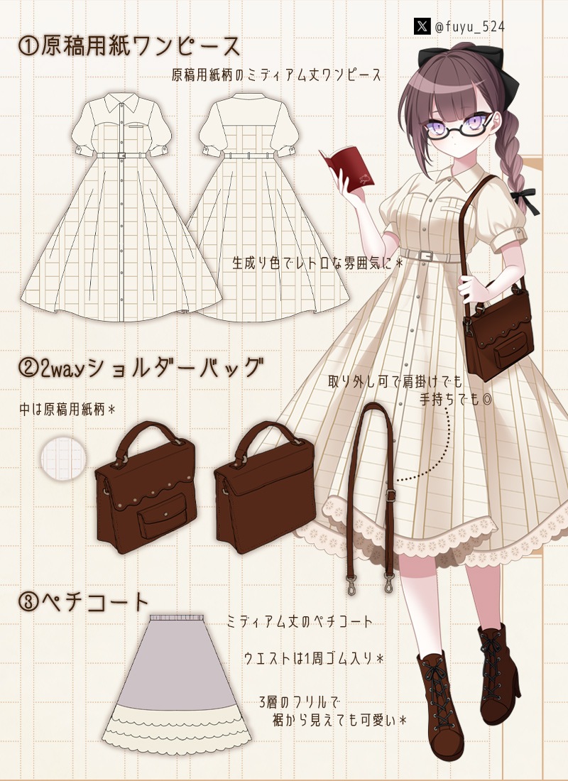 過去大人気だった【原稿用紙柄の文学少女ワンピース】をリバイバル&コーデセットにしたお得な福袋