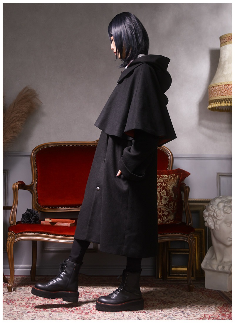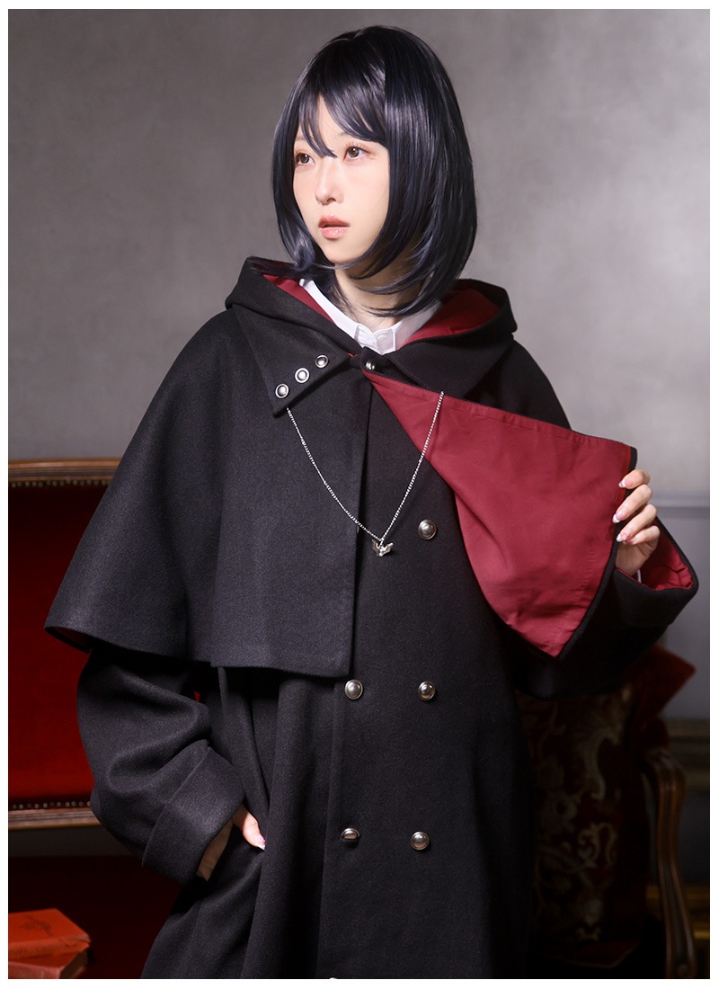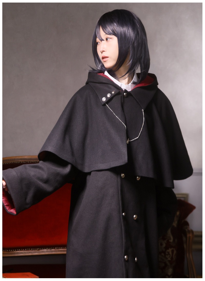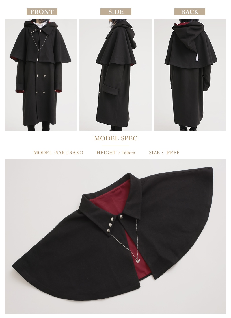 ロングコートとケープがセットになっているユニセックスインバネスコート