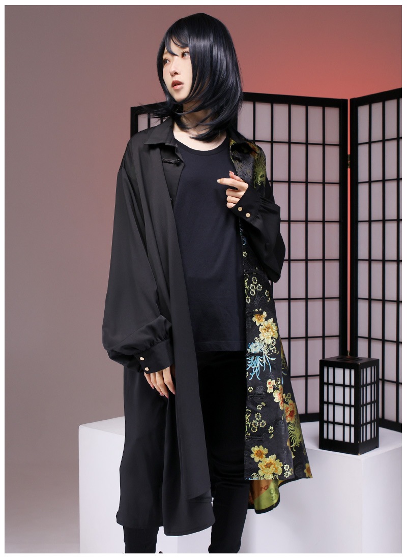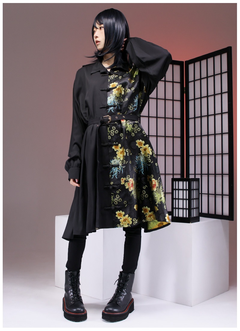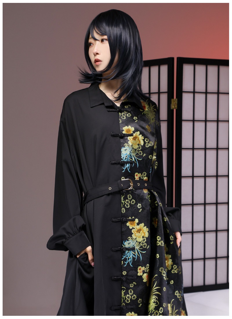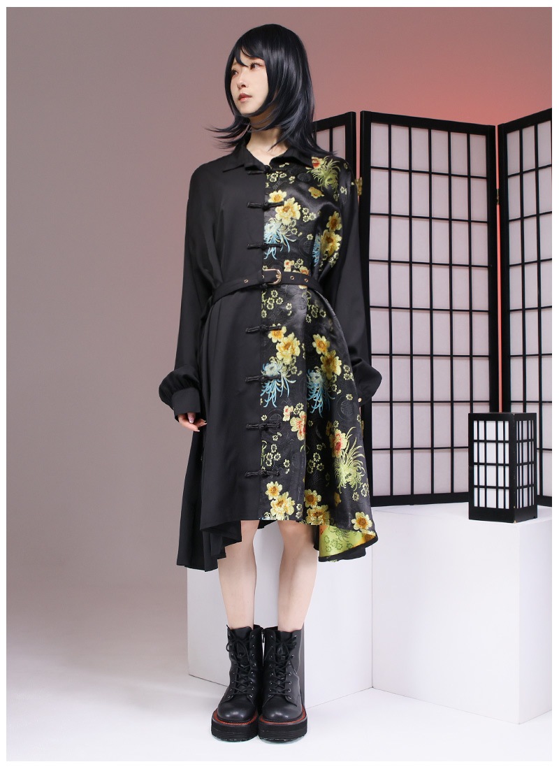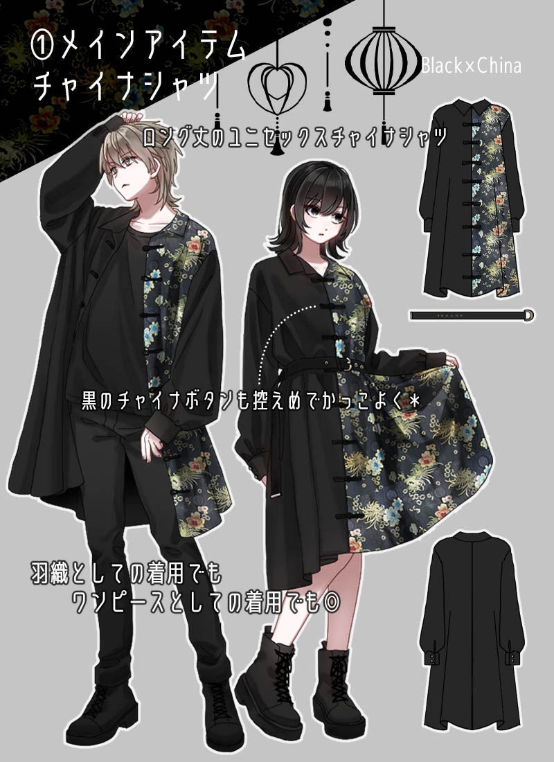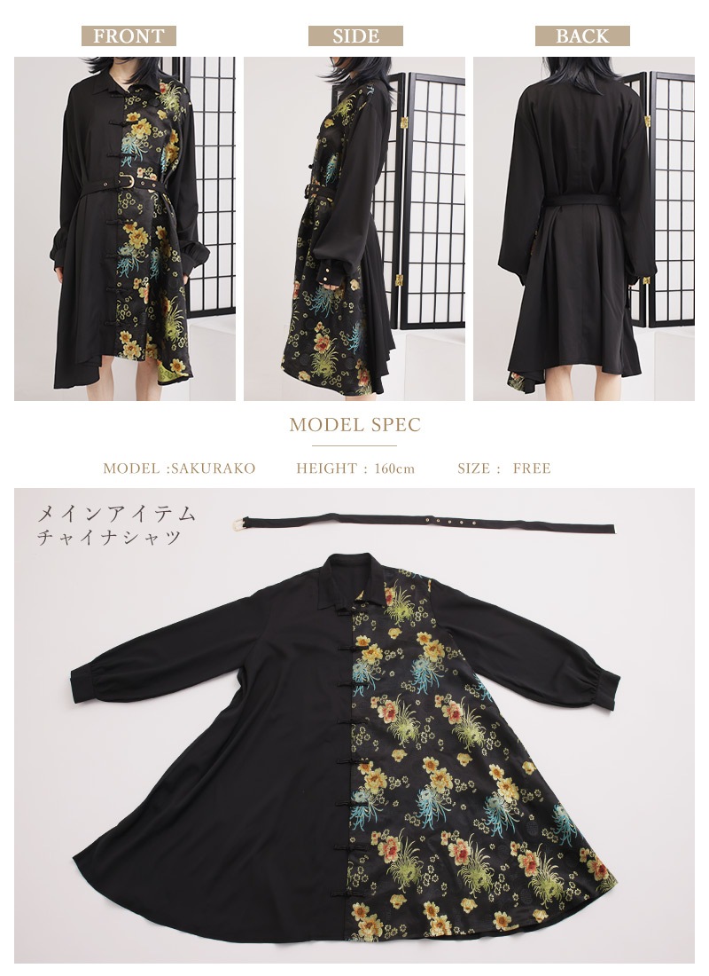 メインアイテムのチャイナシャツはユニセックスで使えるビッグサイズ!ベルト付属でワンピースにもなります。
