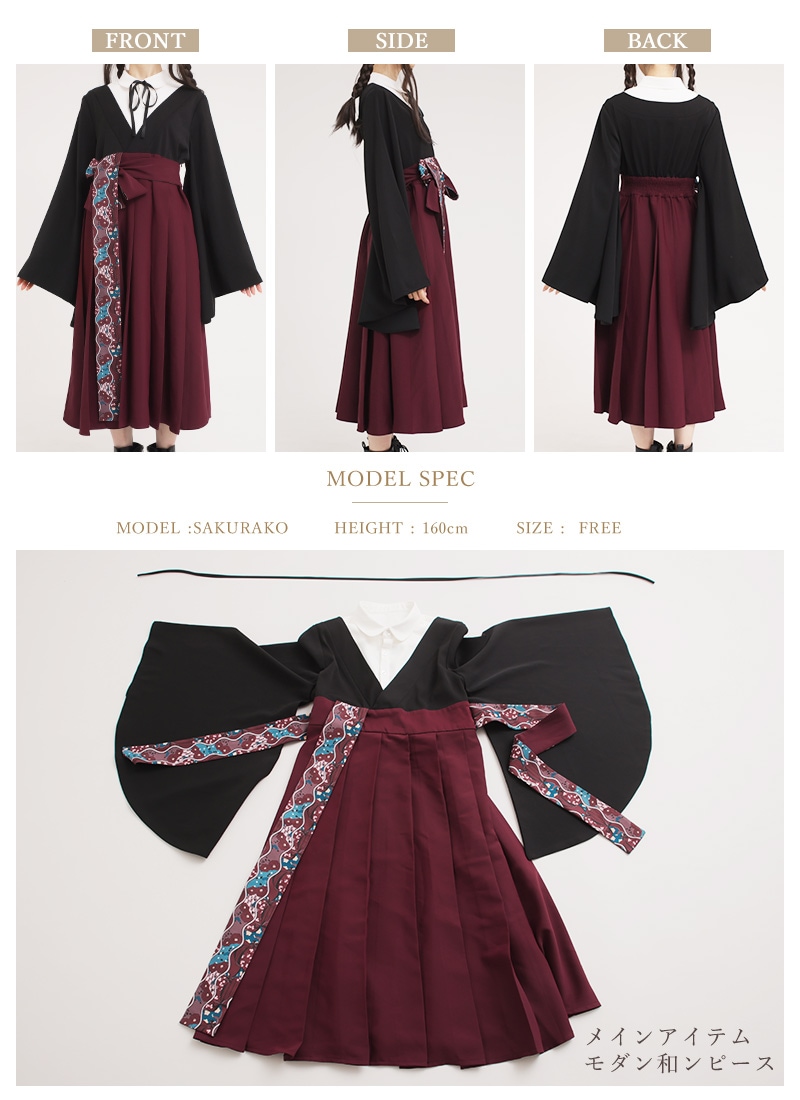 【①メインアイテム:ワンピース】肩幅40cm 身幅42cm 着丈112cm 袖丈60cm ウエスト36-42cm
