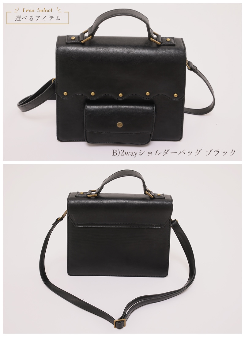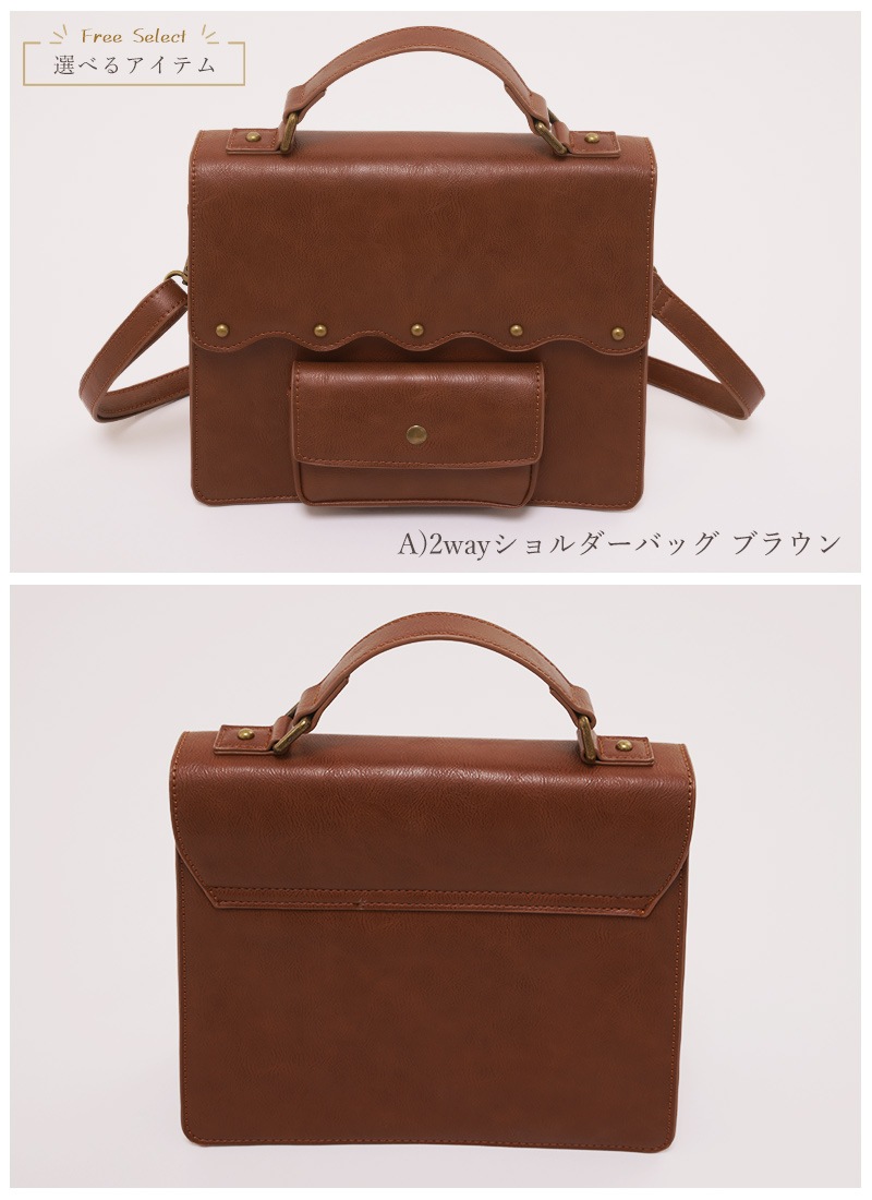 【②選べるアイテム:ショルダーバッグ(ブラウン・ブラック)】合成皮革 裏地:ポリエステル100%