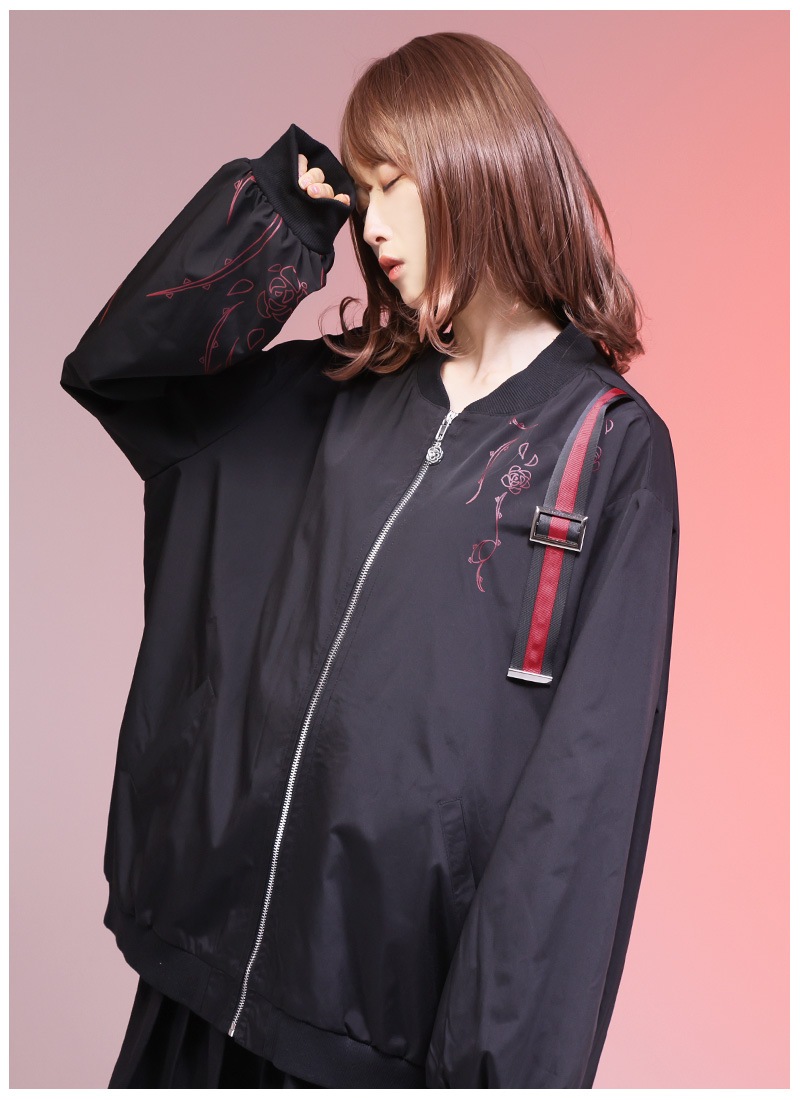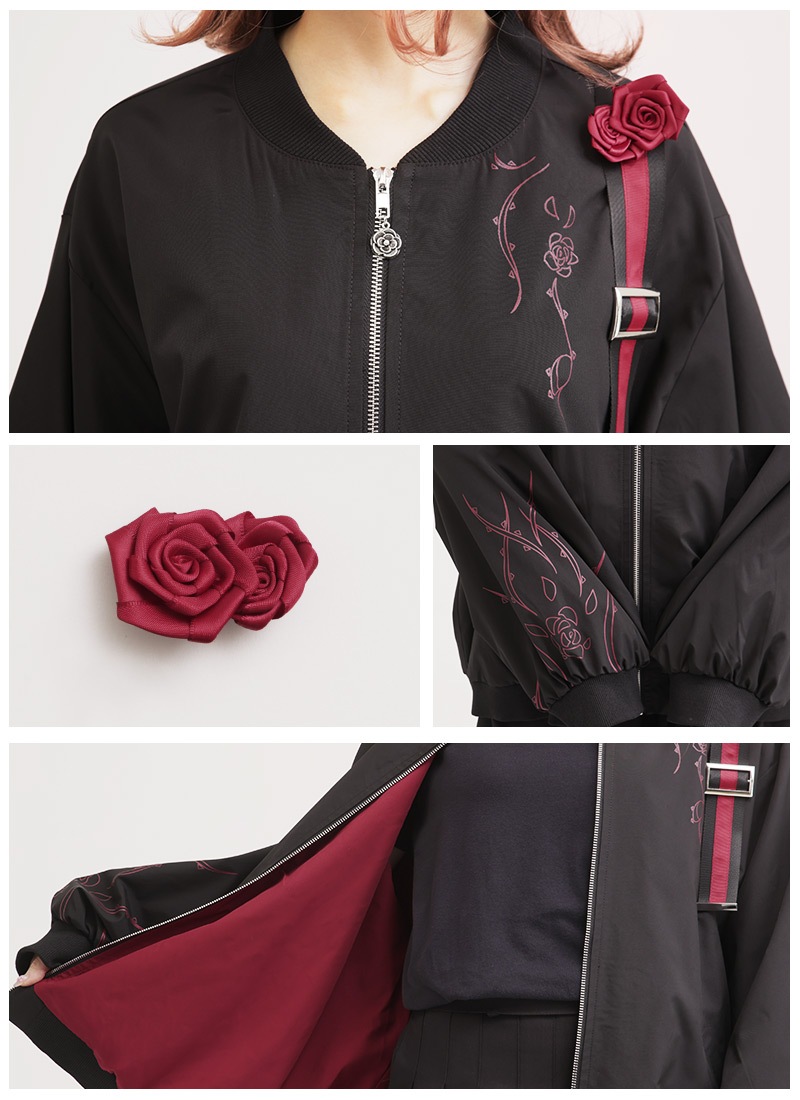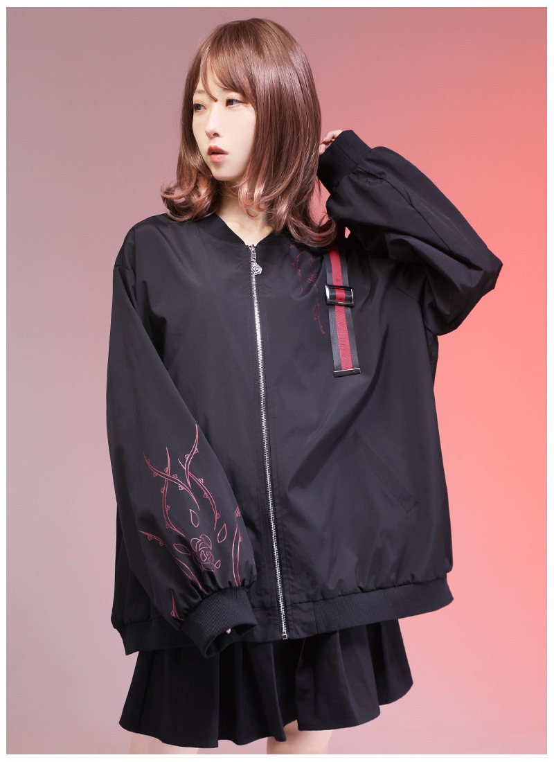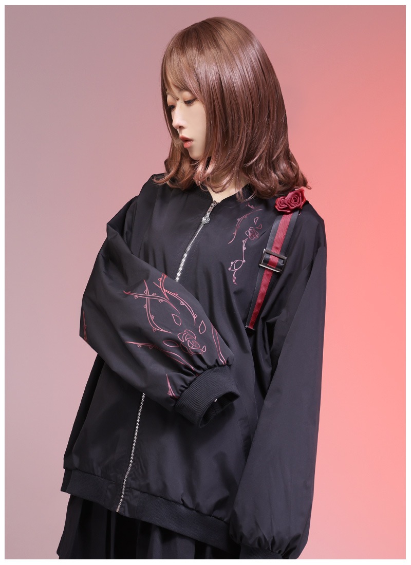 薔薇と茨をプリントしたユニセックスで着られるブルゾン