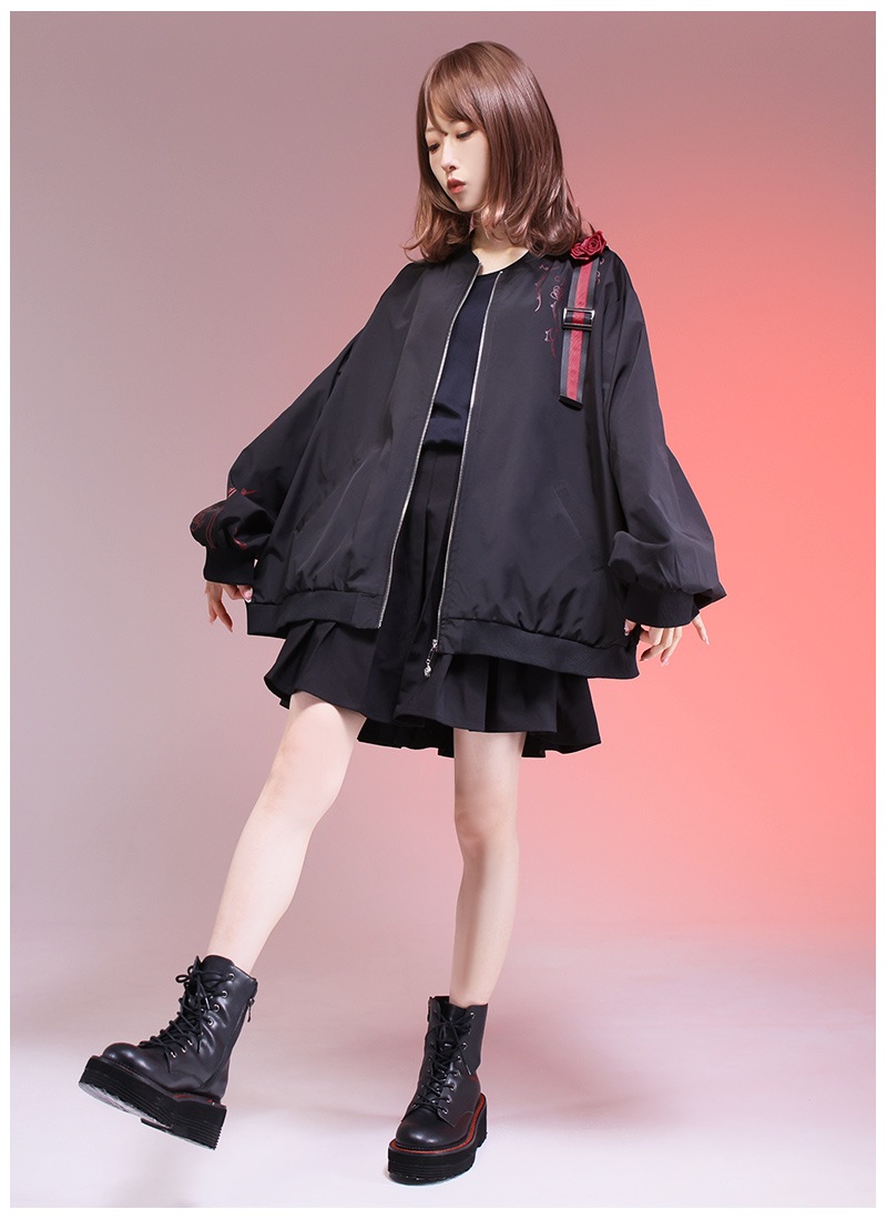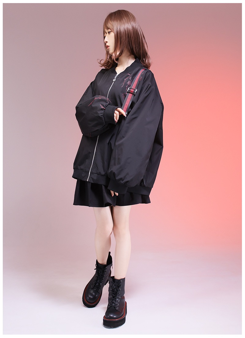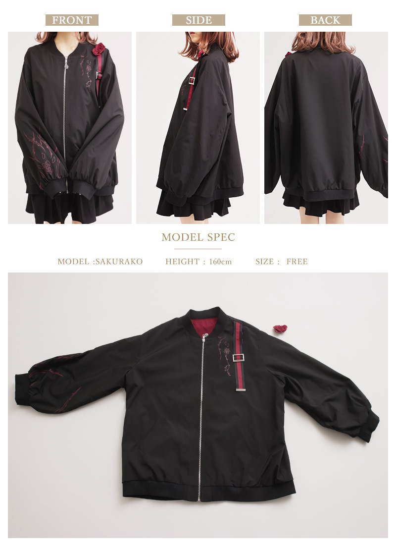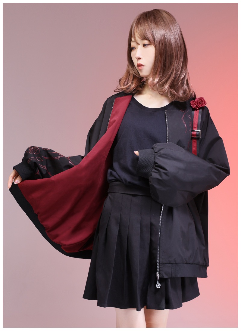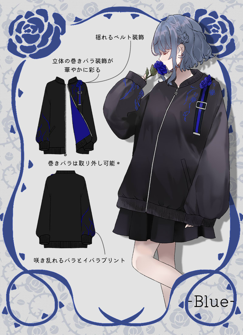 薔薇と茨をプリントしたユニセックスで着られるブルゾン