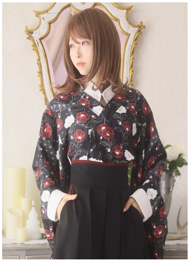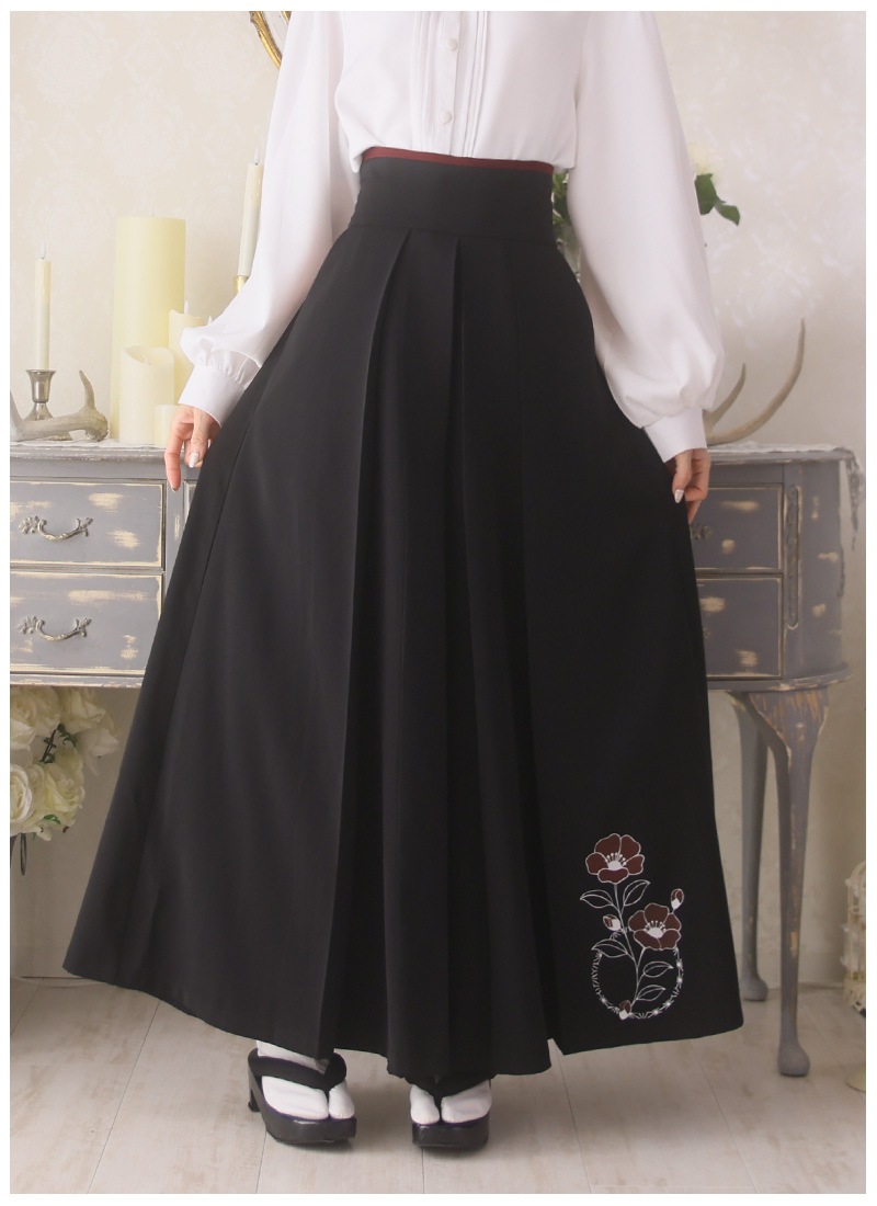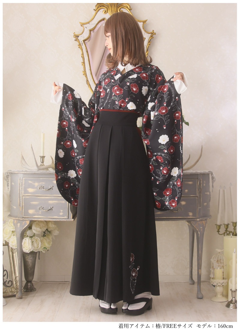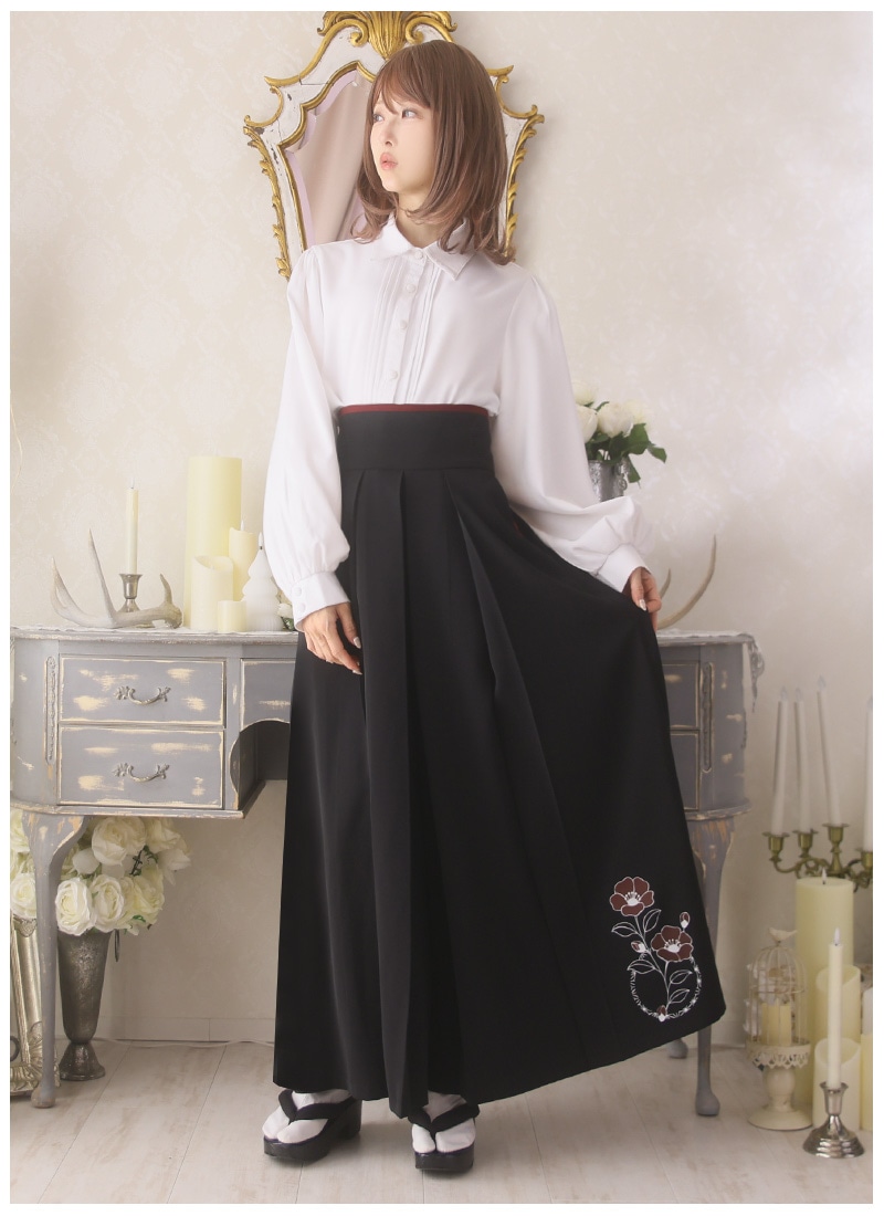 椿柄の和袖トップス&袴風ワイドパンツのコーデセット