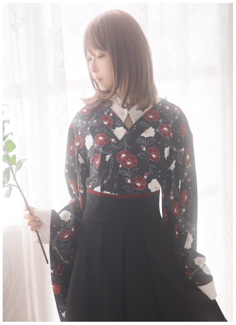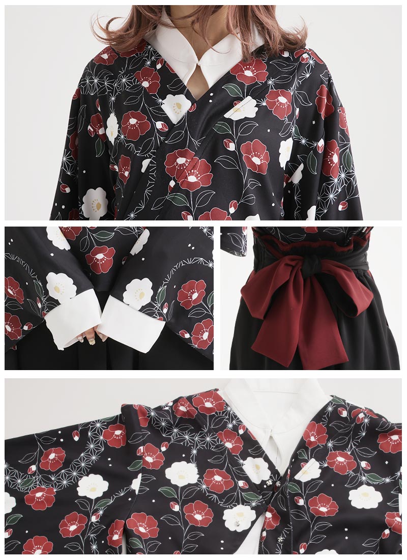 トップスは和服にブラウスを重ね着したようなデザイン