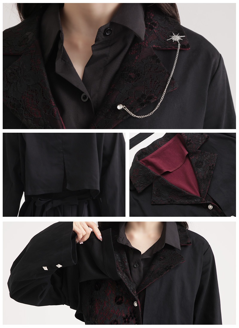 ●素材 【上身頃/スカート】ポリエステル100%【ガンパッチ/袖/ベルト】ポリエステル95%,ポリウレタン5% *表記と異なる場合がございます