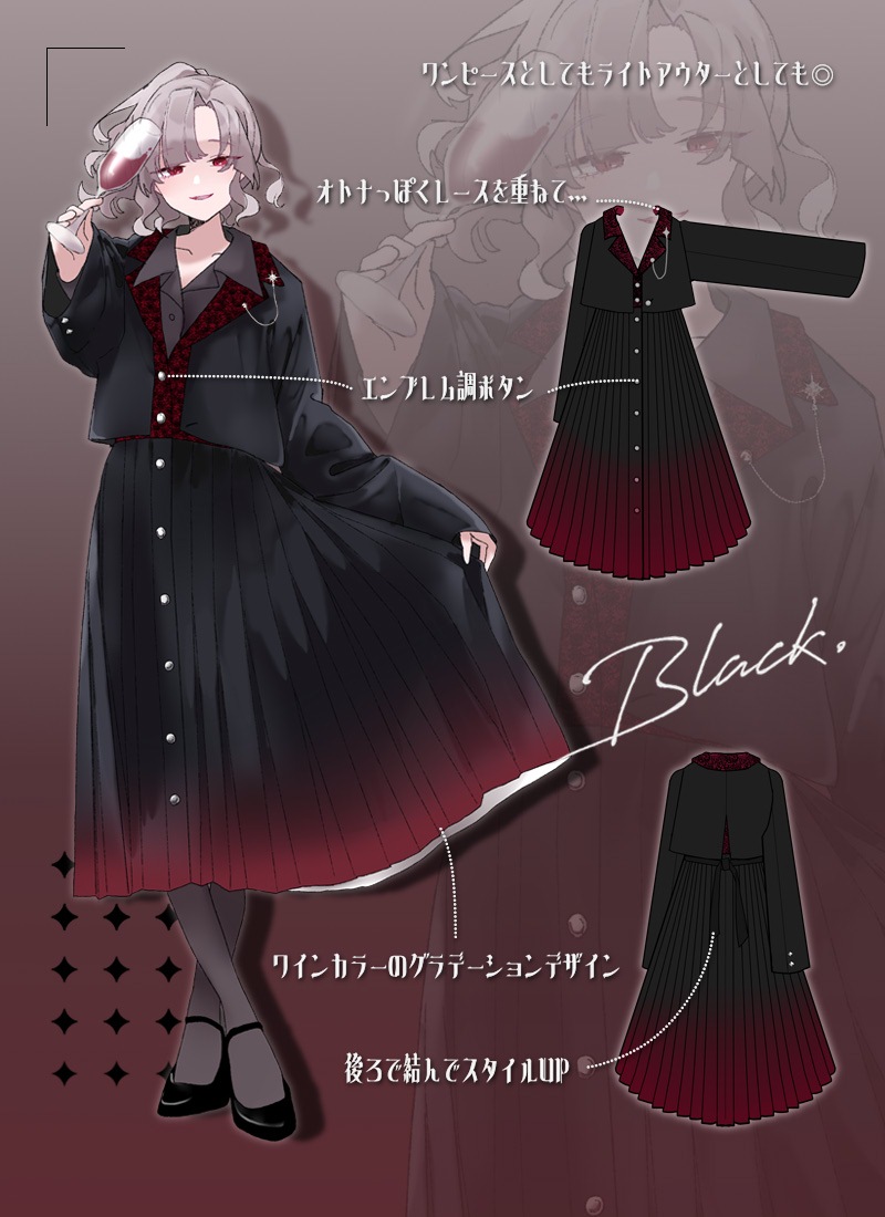 ワインレッドのグラデーションが美しい、オトナ上品ワンピース