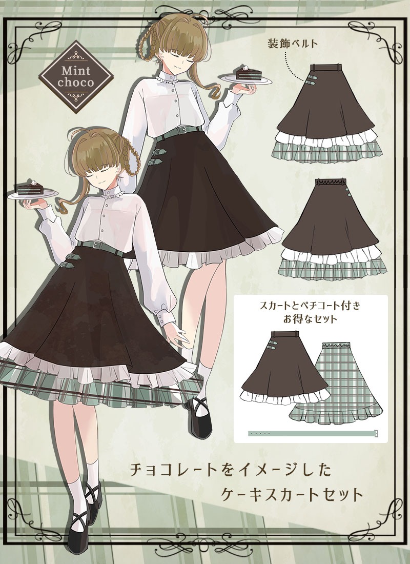チョコレートをイメージしたスカート&ペチコートのセット