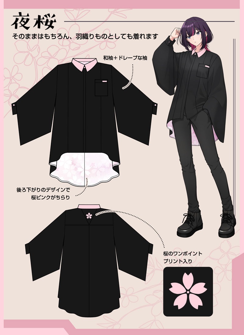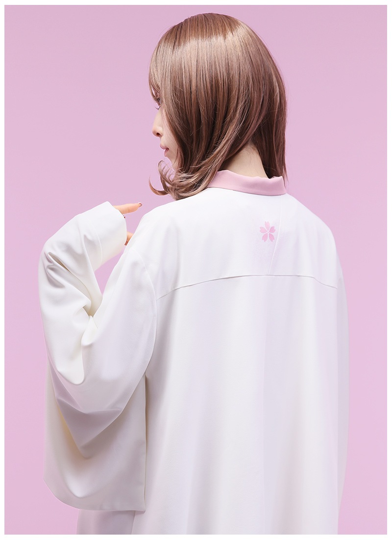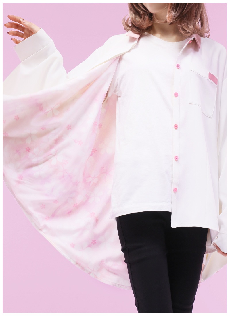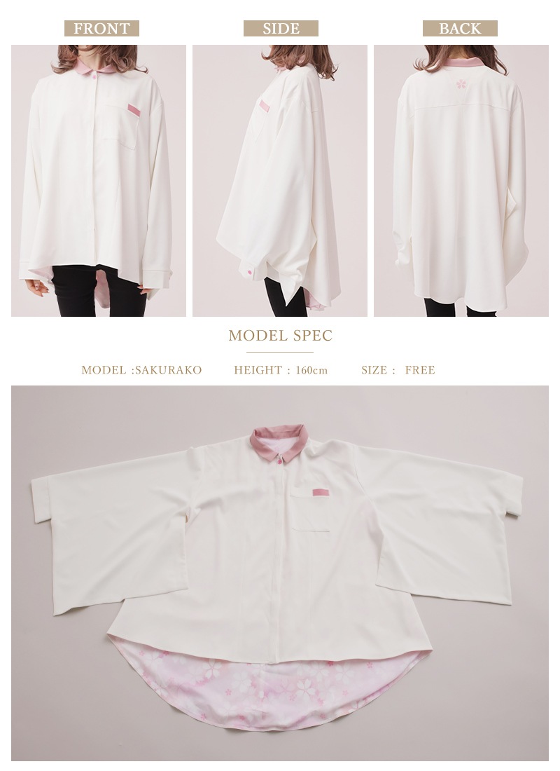 裏地、襟カラー、桜のワンポイントバッグプリント...シンプルでクールな中にも桜要素を散りばめたユニセックスシャツ