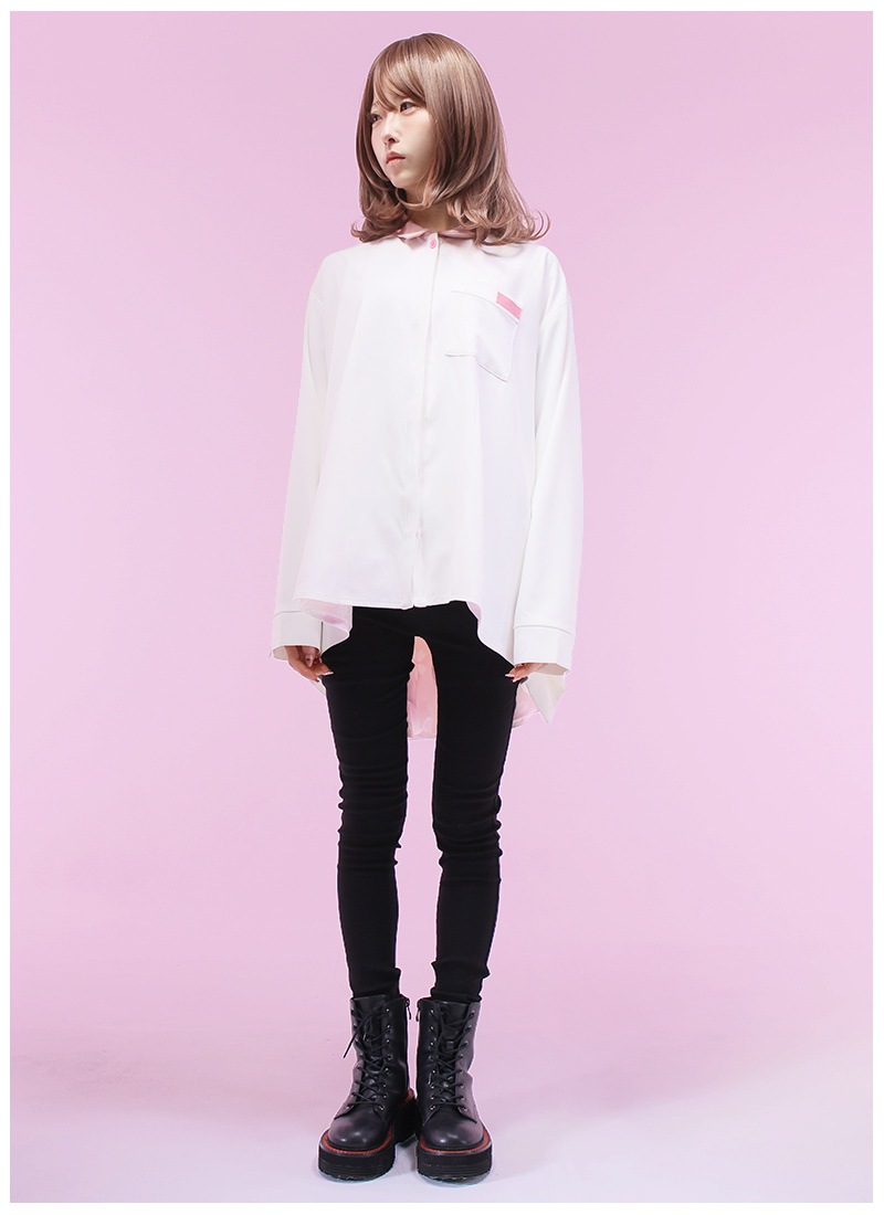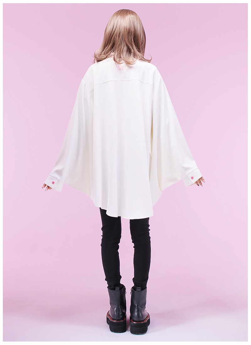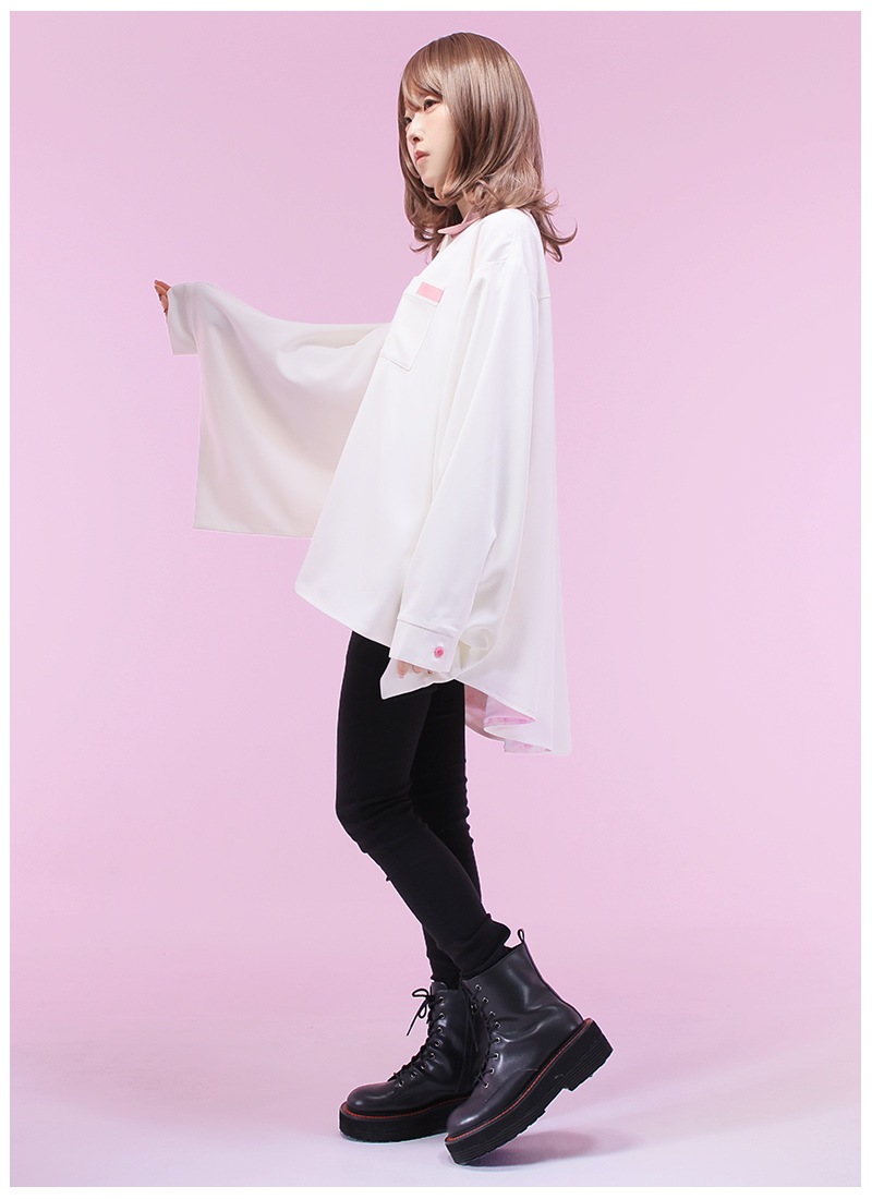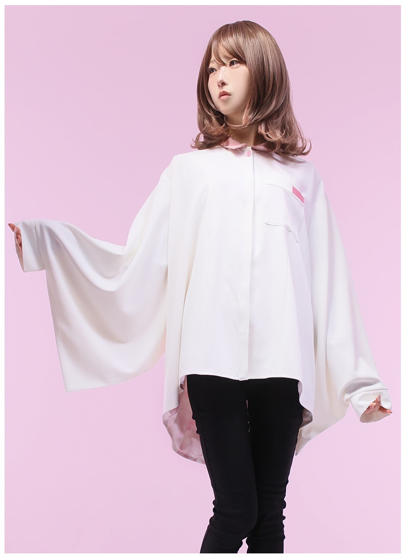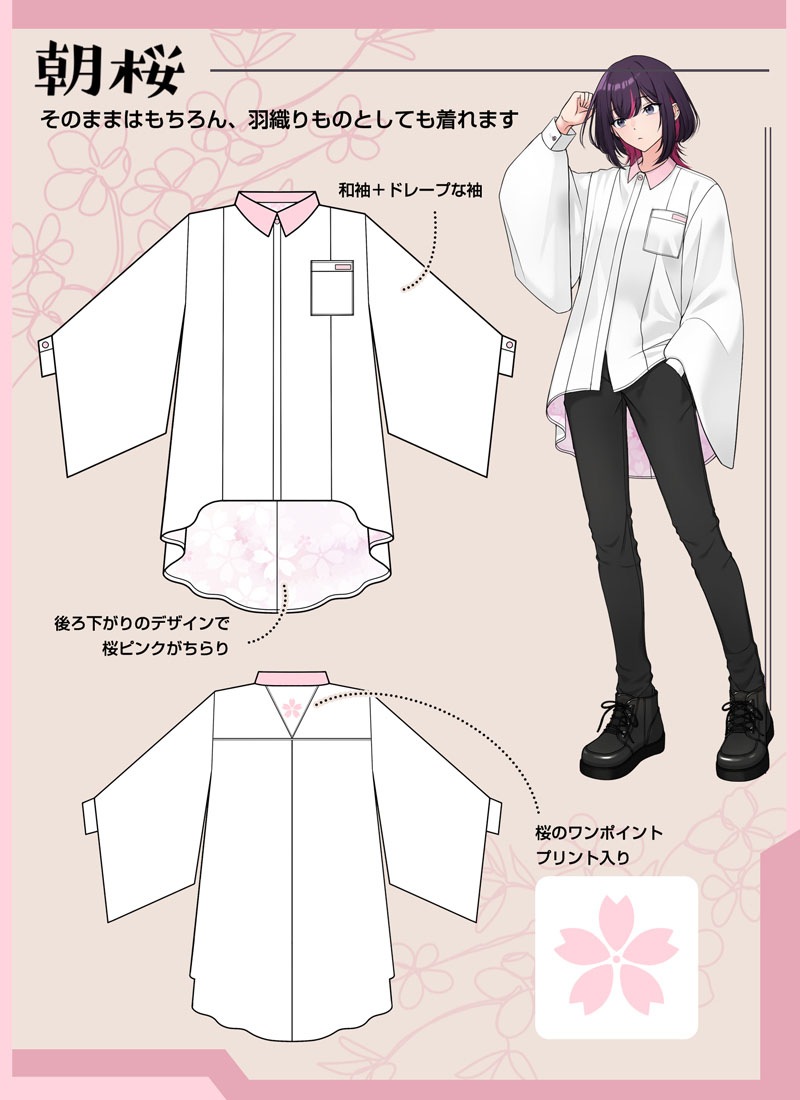 裏地、襟カラー、桜のワンポイントバッグプリント...シンプルでクールな中にも桜要素を散りばめたユニセックスシャツ