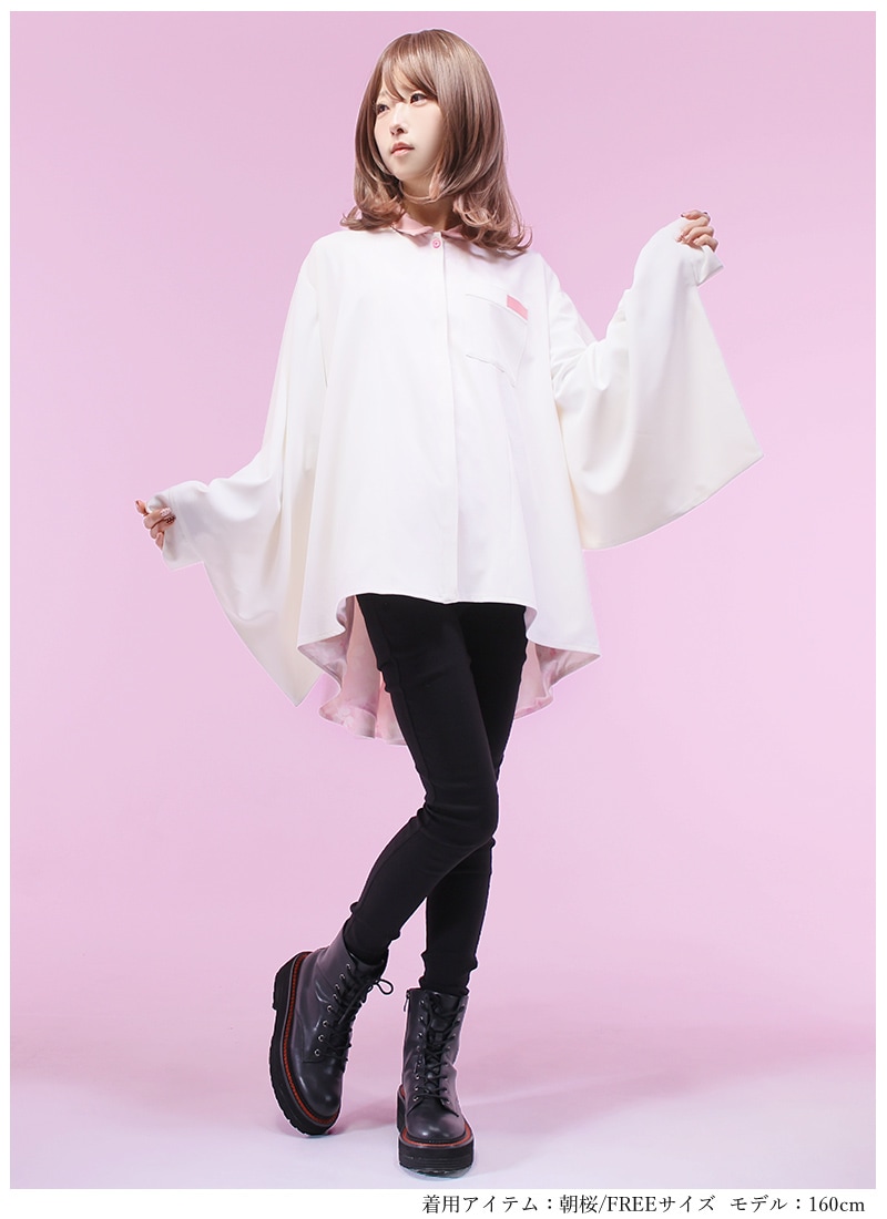 後ろ下がりのフィッシュテールデザインで、桜柄がチラ見せさせつつパンツにもスカートにも合わせられる万能デザイン