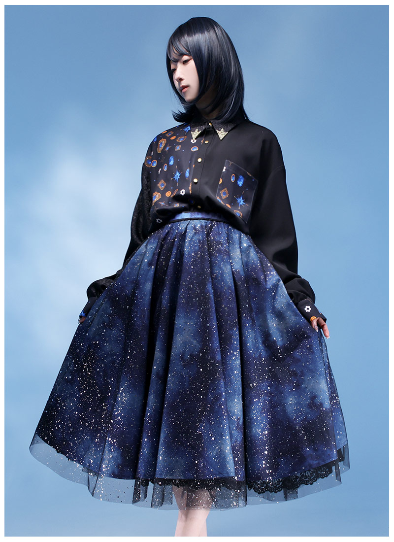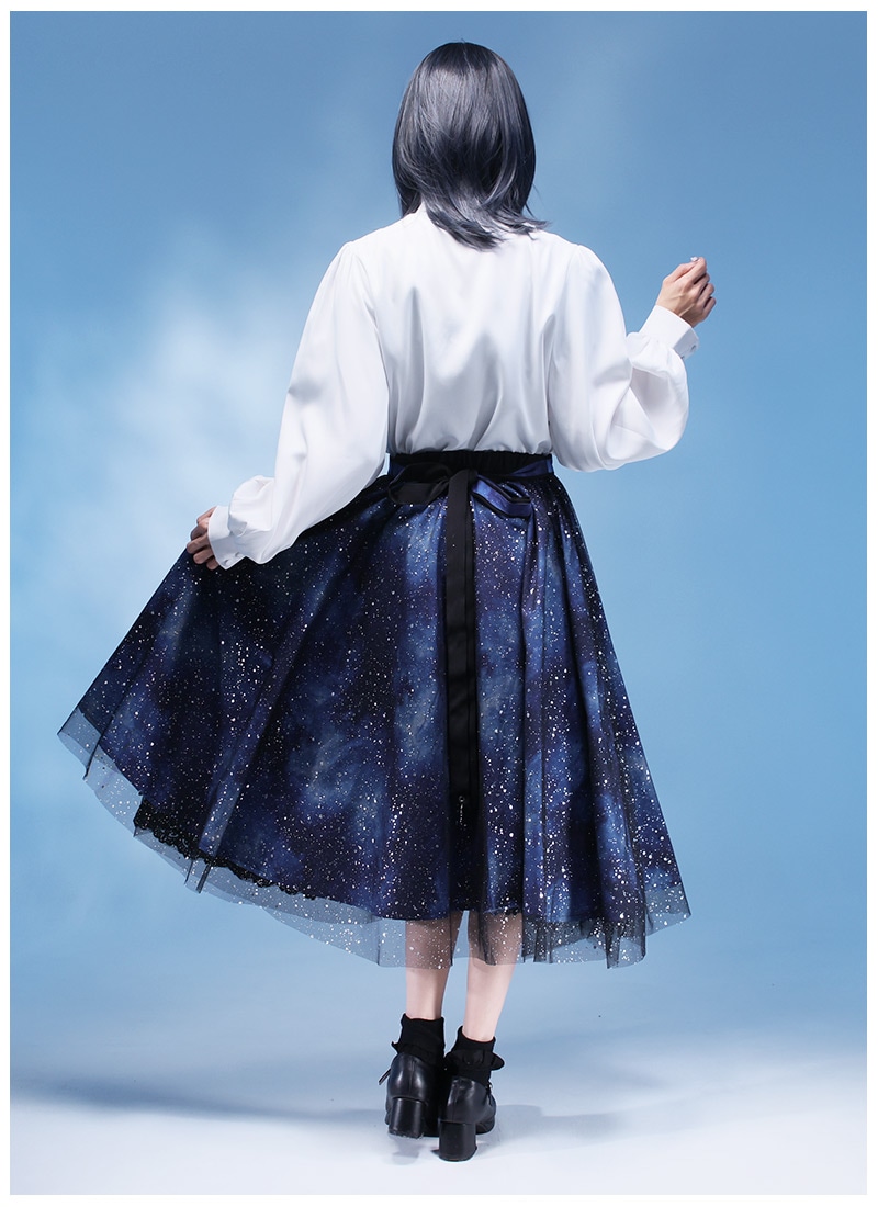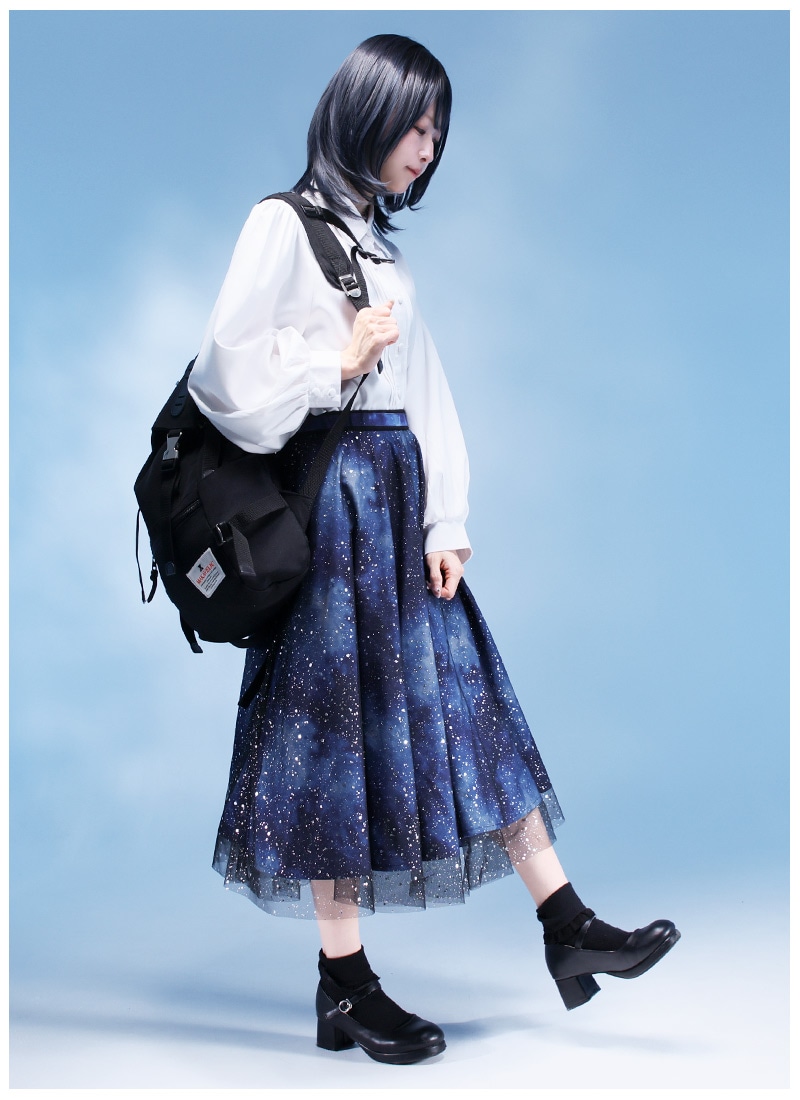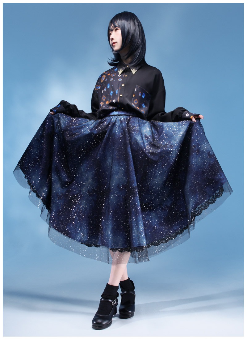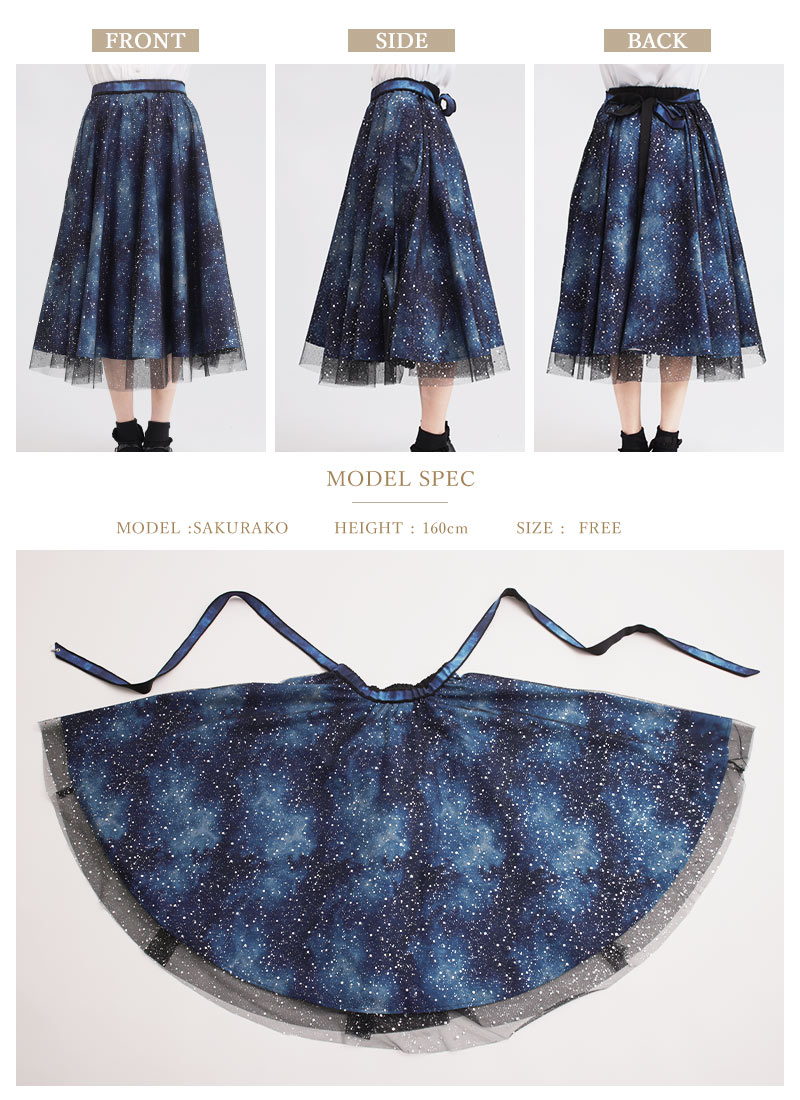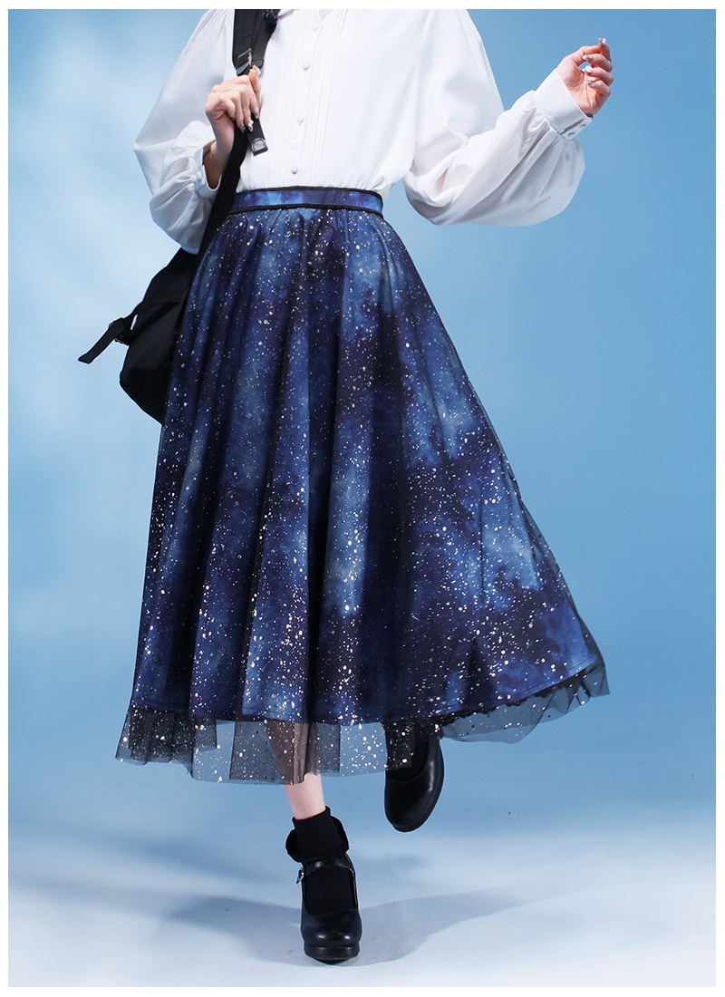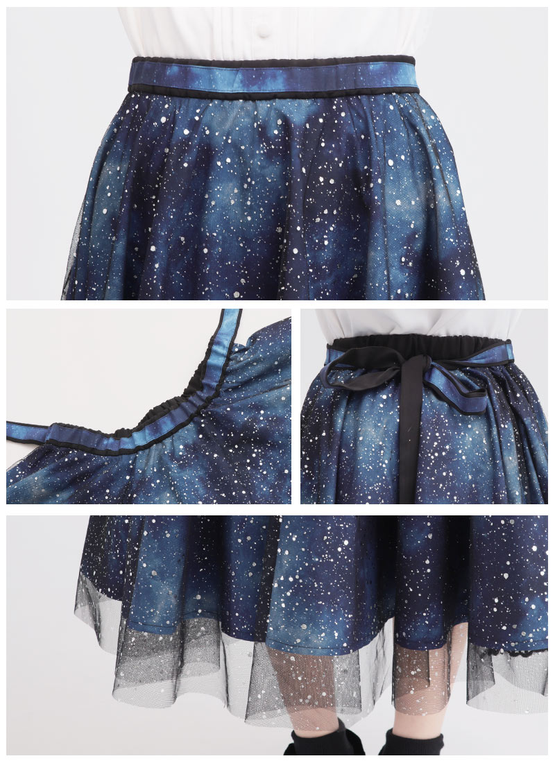 Favoriteで大人気の宇宙柄×星くずプリントチュールのレイヤードスカート