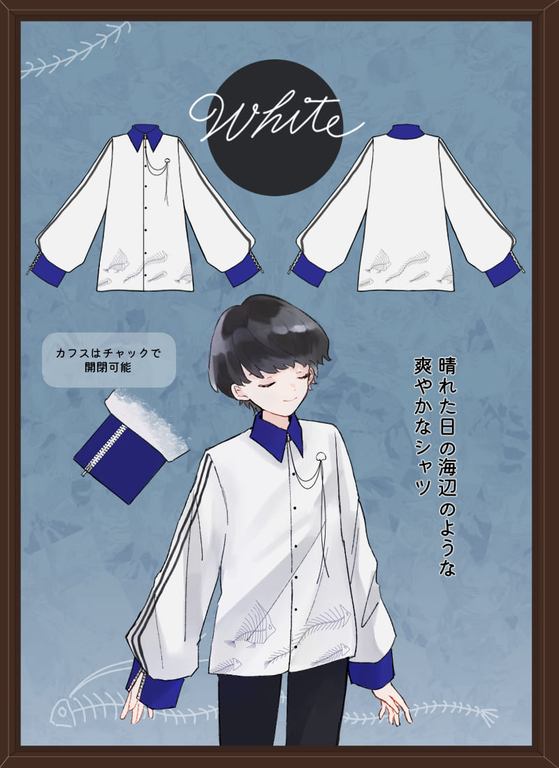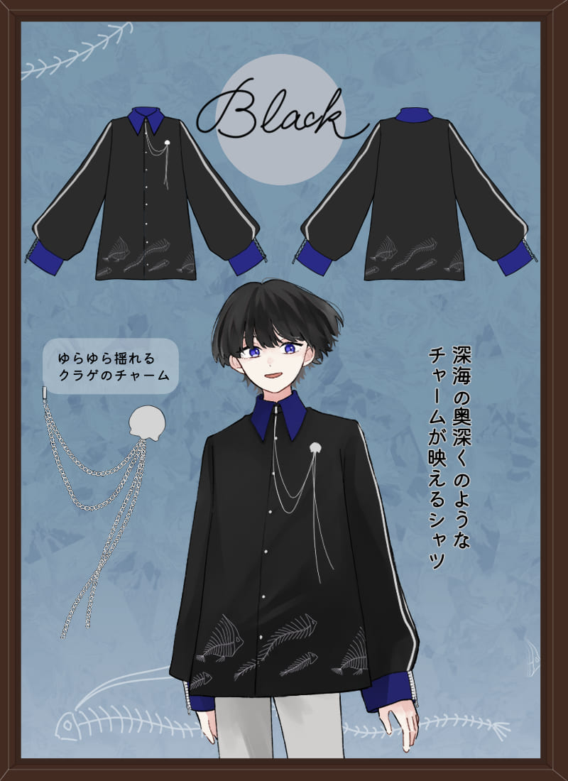 フィッシュボーンとクラゲチャームのシンプルデザインシャツ