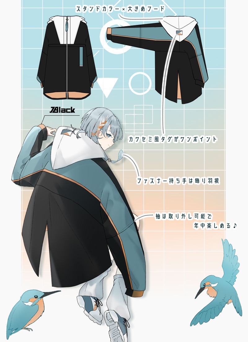 「飛ぶ宝石」カワセミをイメージしたマウンテンパーカー
