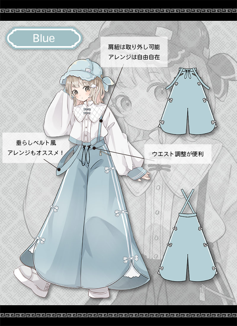 着丈113cm(肩紐込み) ウエスト35-42cm また上44cm また下69cm わたり38cm