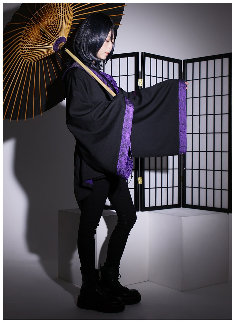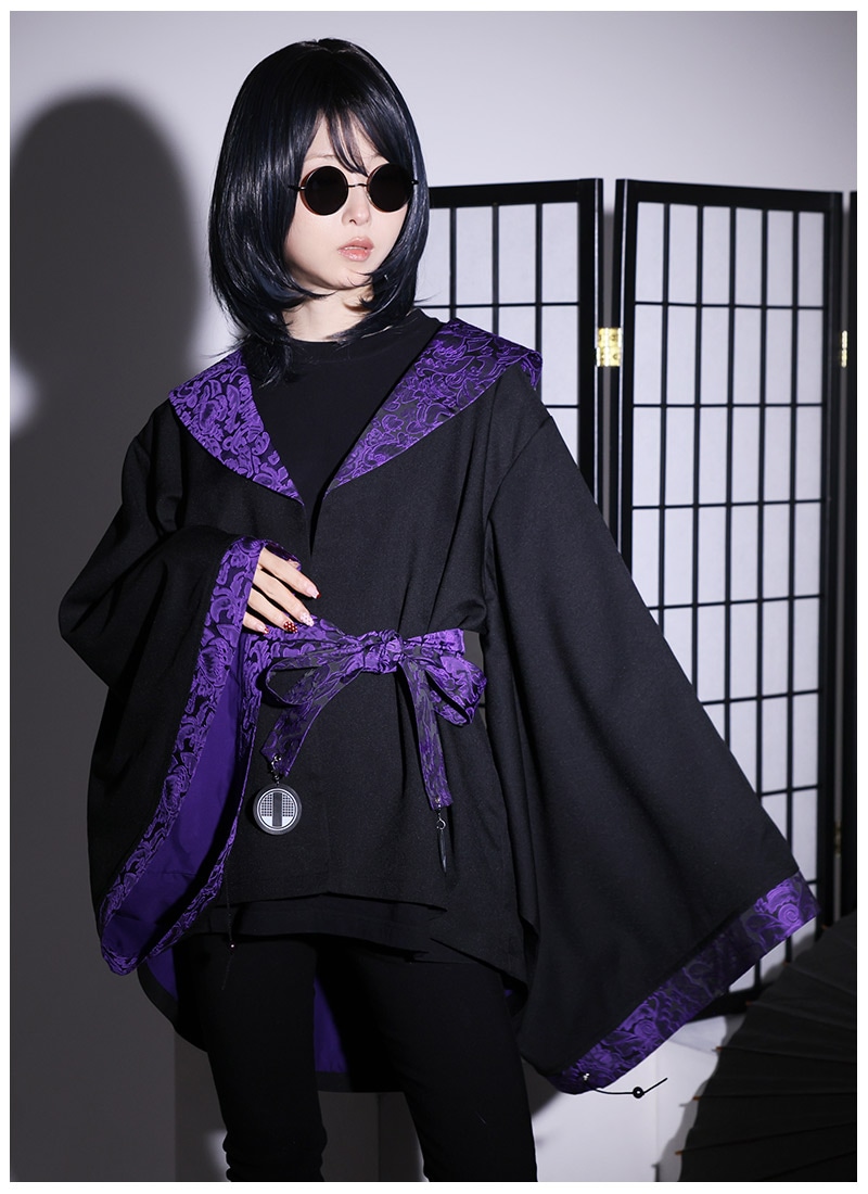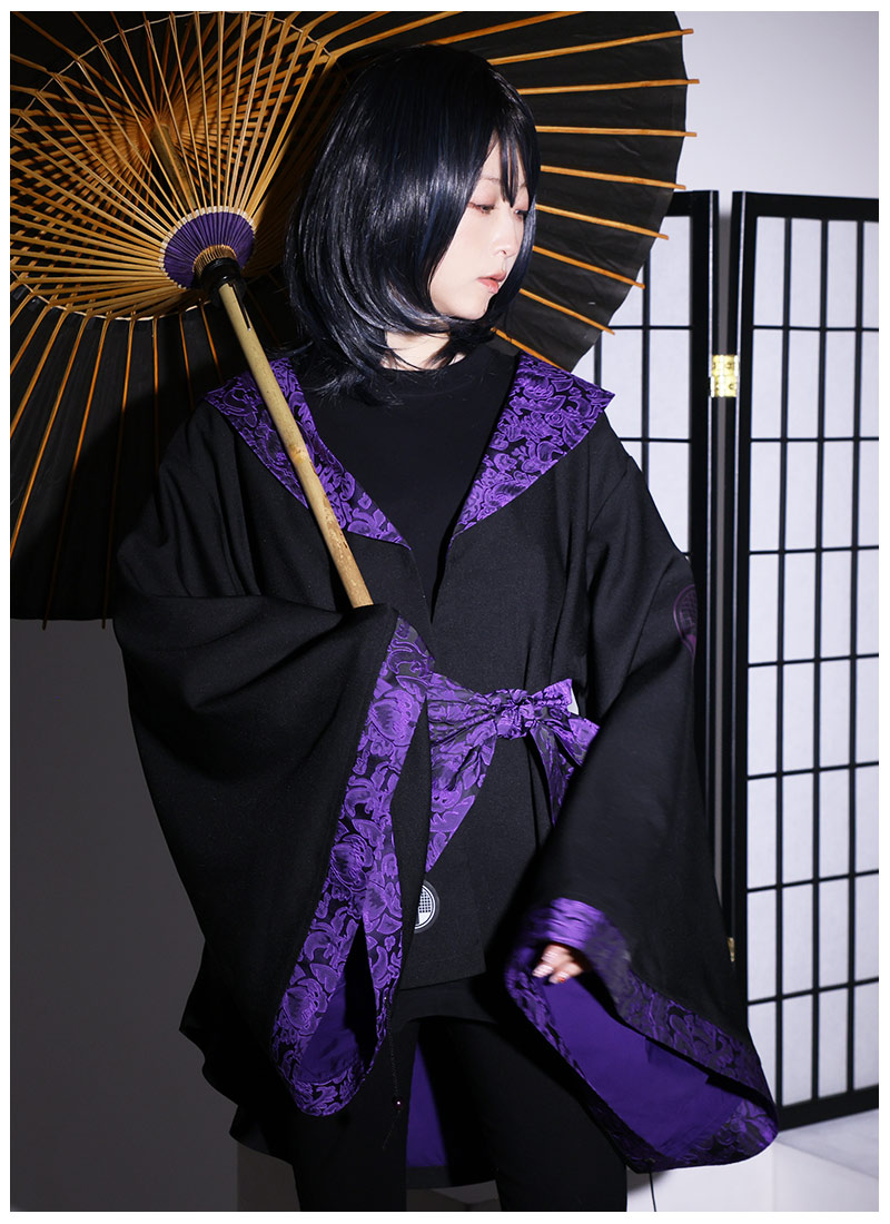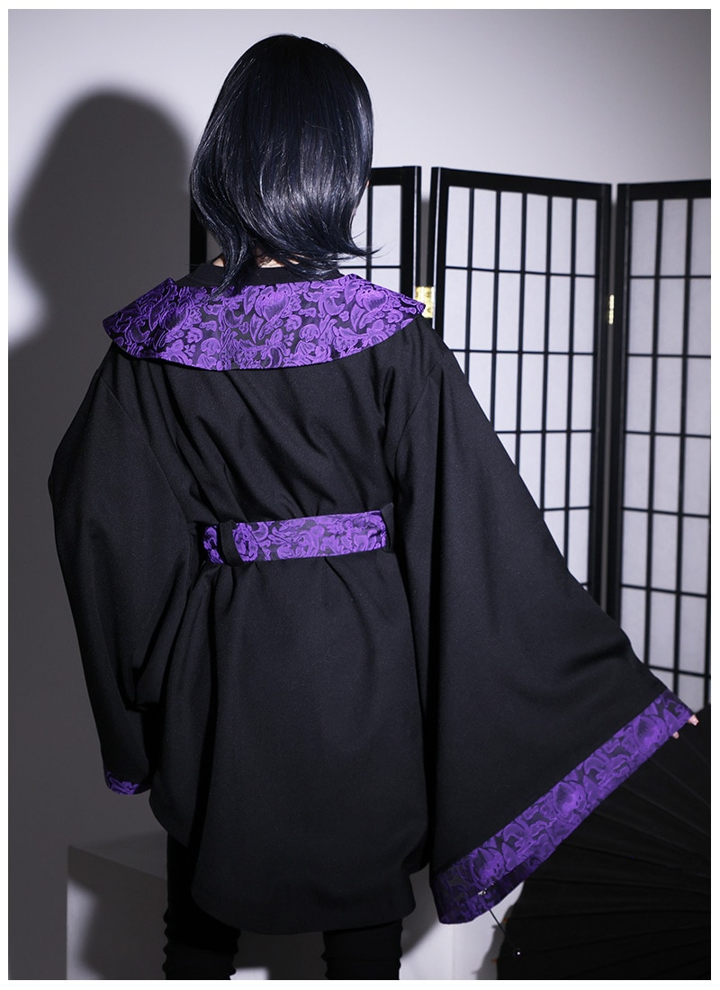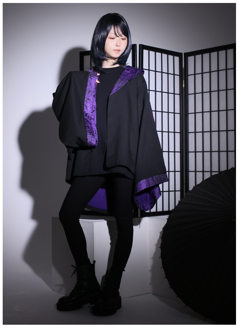 高級感のあるジャガード生地をポイント使いした、アングラな雰囲気漂う和袖羽織