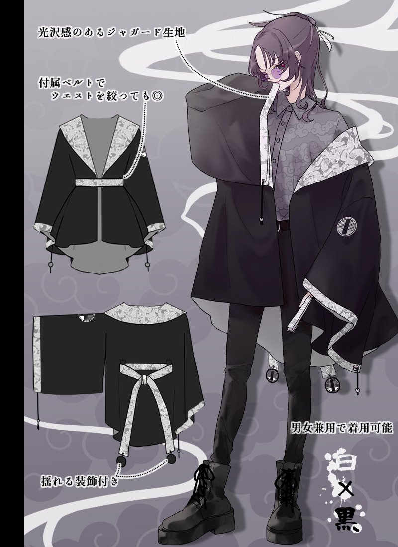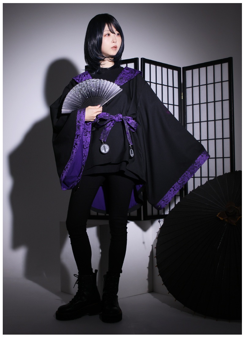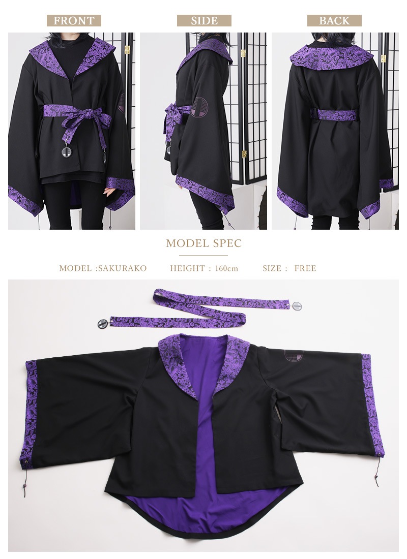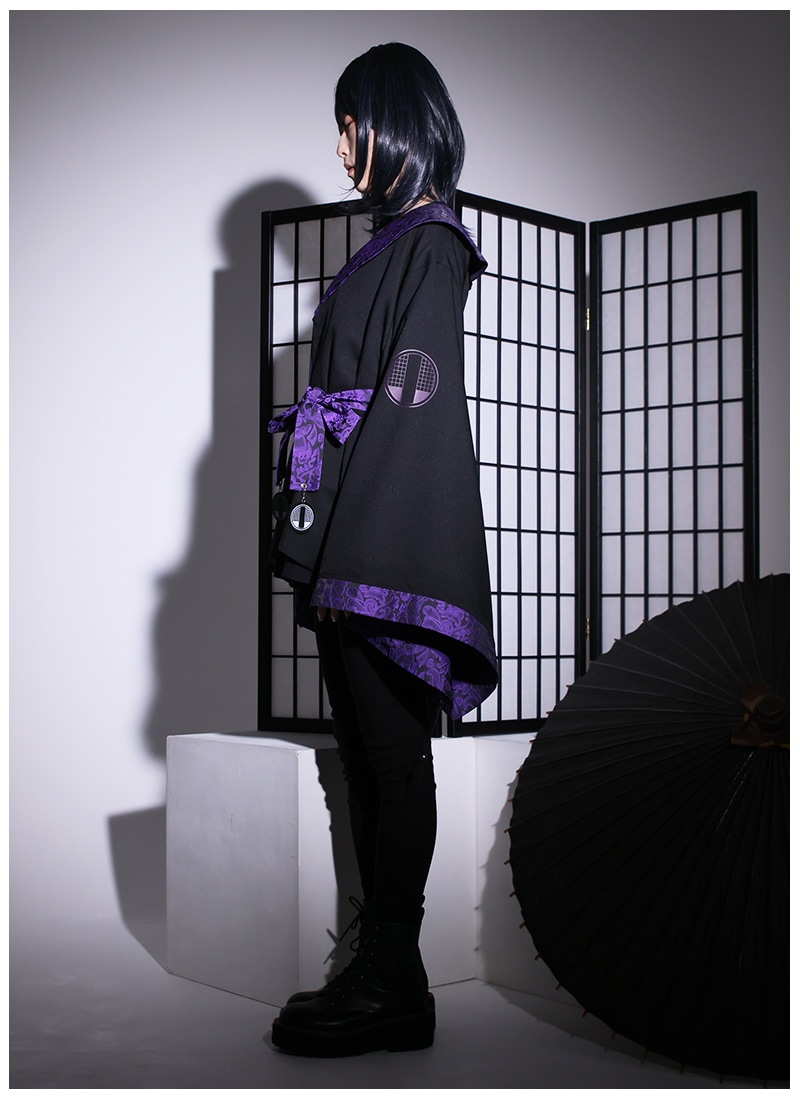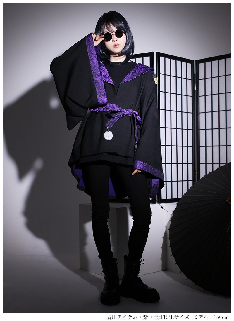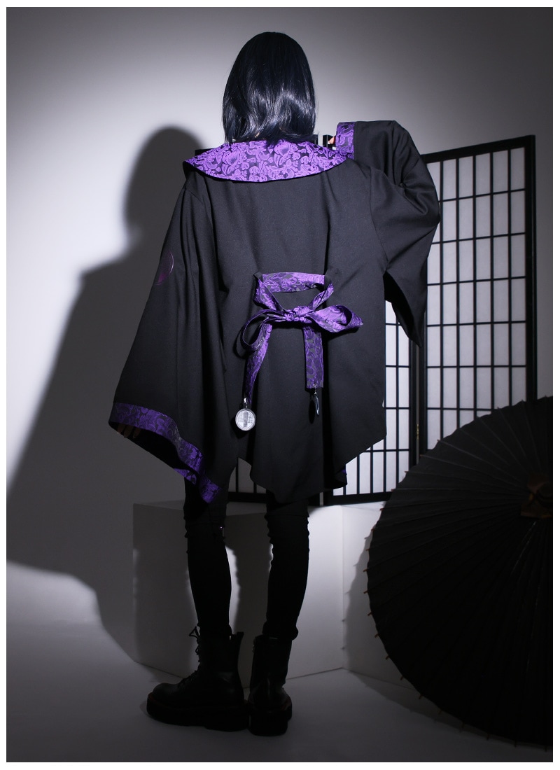 高級感のあるジャガード生地をポイント使いした、アングラな雰囲気漂う和袖羽織