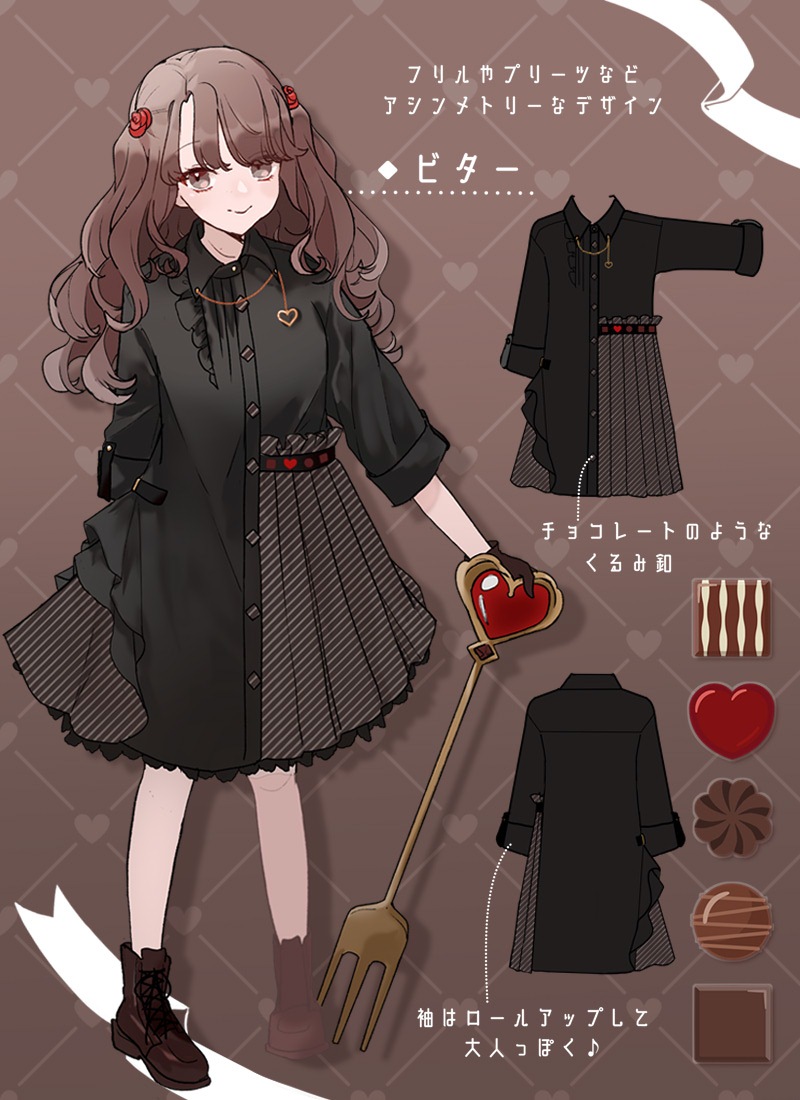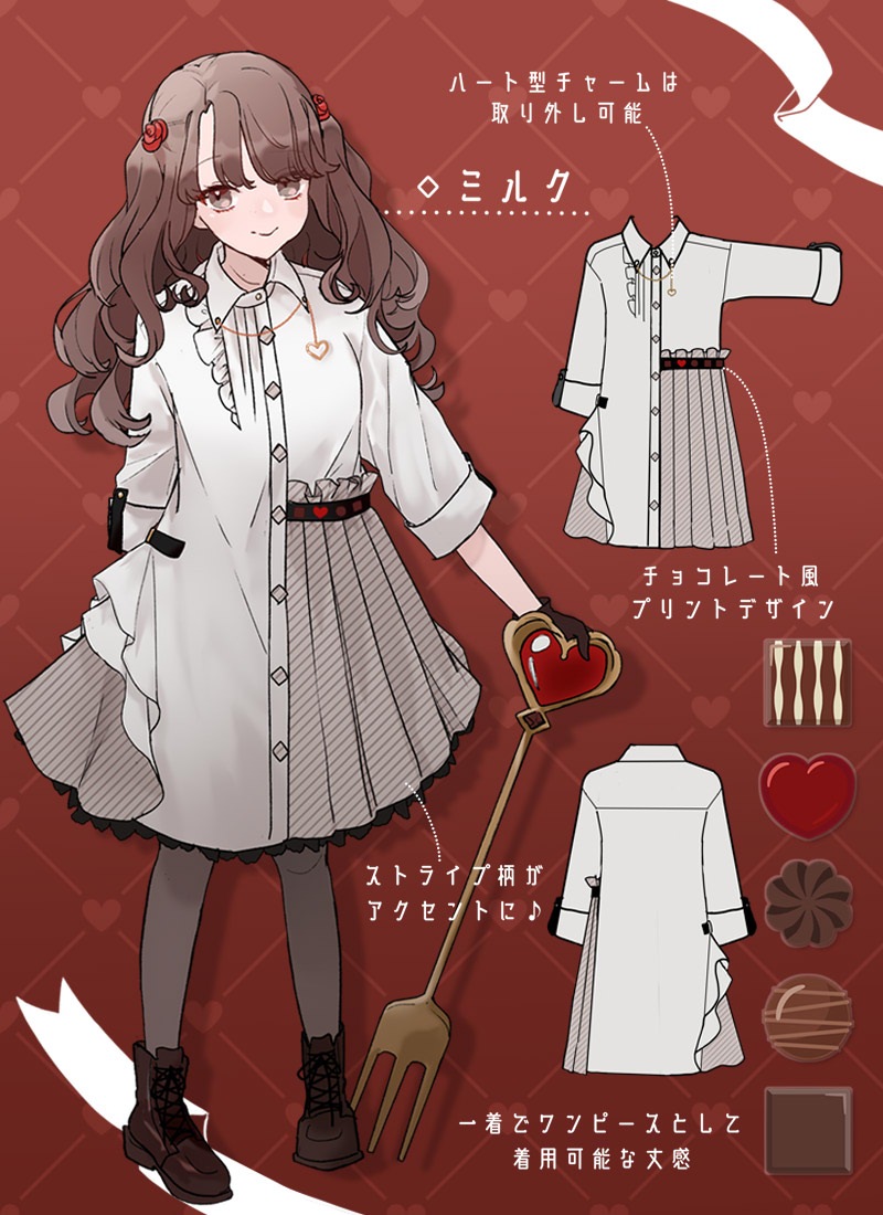 ボタンやプリントはチョコレートをイメージし、ほんのりビターで可愛らしい世界観たっぷり!