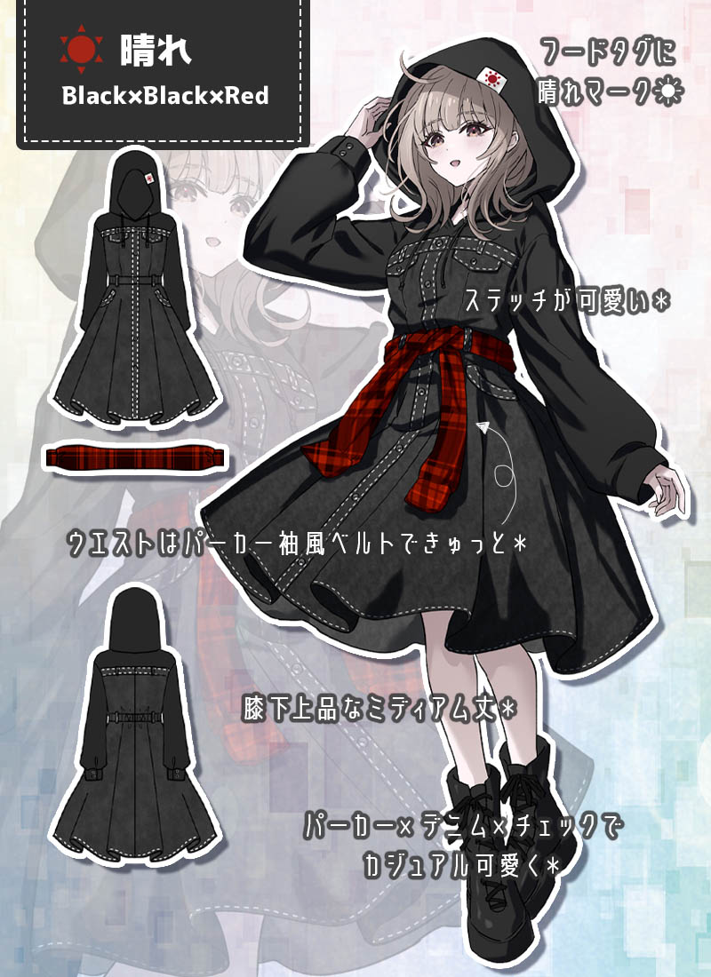 「晴れ」は着やすいブラックに赤チェックの差し色