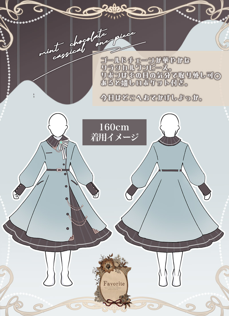 チョコミントをイメージしたカラーリングのクラシカルワンピース