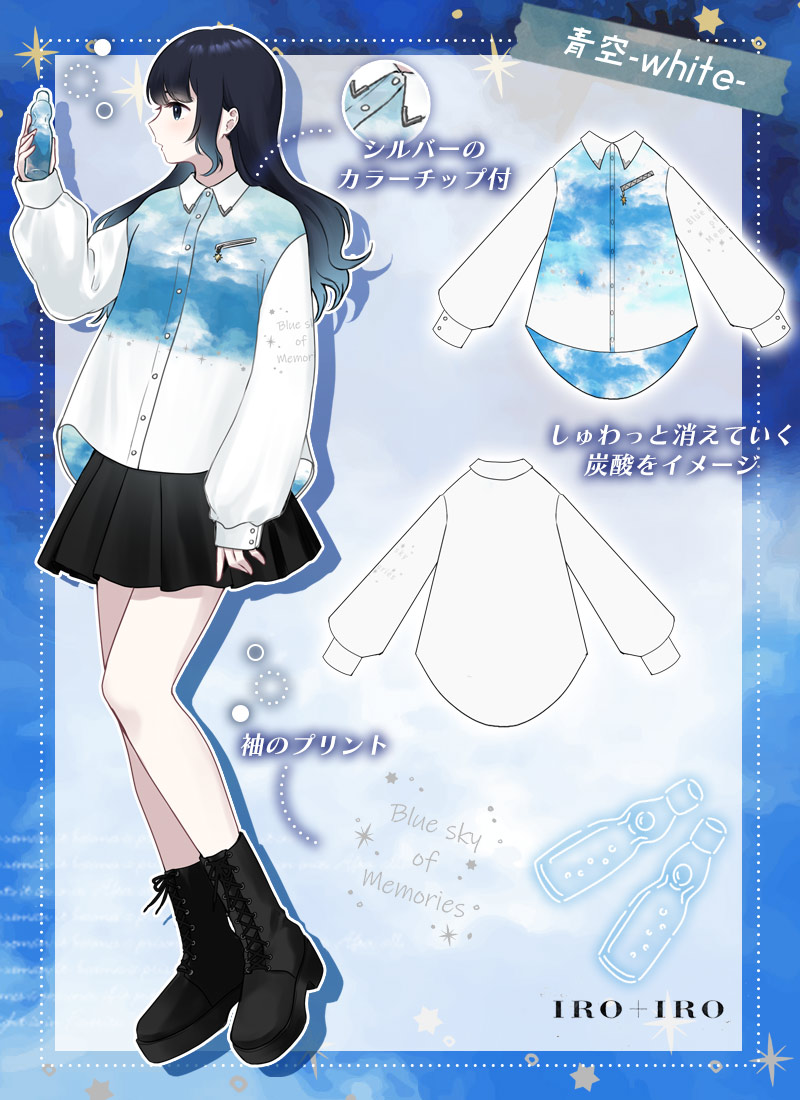 儚く消えていくあの日の思い出を閉じ込めた、空色プリントのユニセックスシャツ