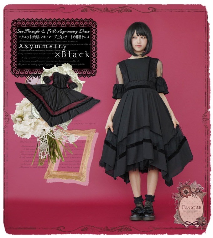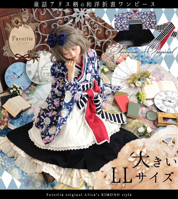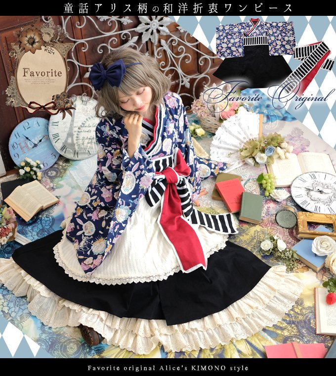 Favorite×大正×対称アリス *Favoriteオリジナル*リボン&ベストのついたレイヤードフレア3点セット♪鏡の国の謎多きアリスワンピース【アニメ&ゲーム】【2018年7月下旬予約開始】