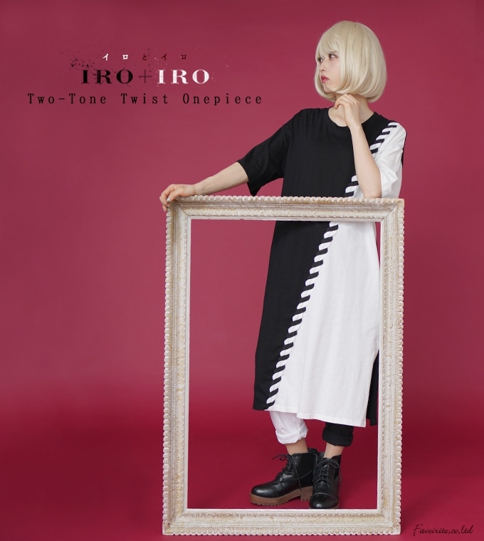 ワンピース 黒 ブラック ロング丈 七分袖 春夏 レディース 変形 モノトーン 切替 ツートーン ワンピースゆったり 大きめ 大きいサイズ 【IRO+IRO】【2018年7月下旬予約開始】