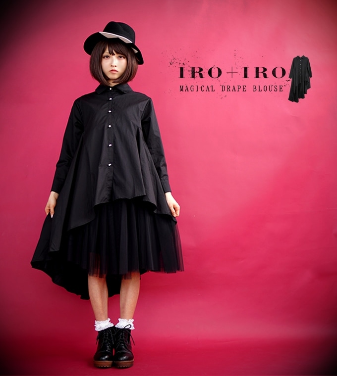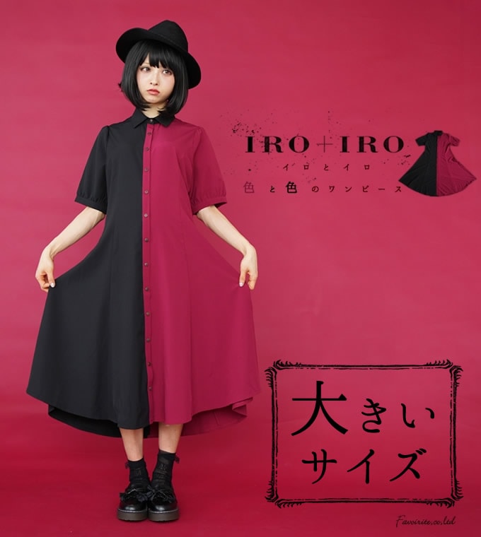 ワンピース ワイン ブラック 半袖 春夏 ロング丈 ツートーン シャツワンピース*Favoriteオリジナル*ツートーンのナチュラルワンピース【IRO+IRO】【2018年4月下旬予約開始】