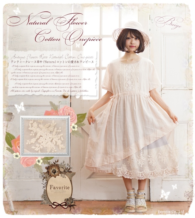 【小さいサイズ】レース ナチュラル ペチスカート *Favoriteオリジナル*ふんわりふわふわキュートなお花レースが無限に広がる゜+生地をたっぷり使ったナチュラルコットンフレアペチスカート♪