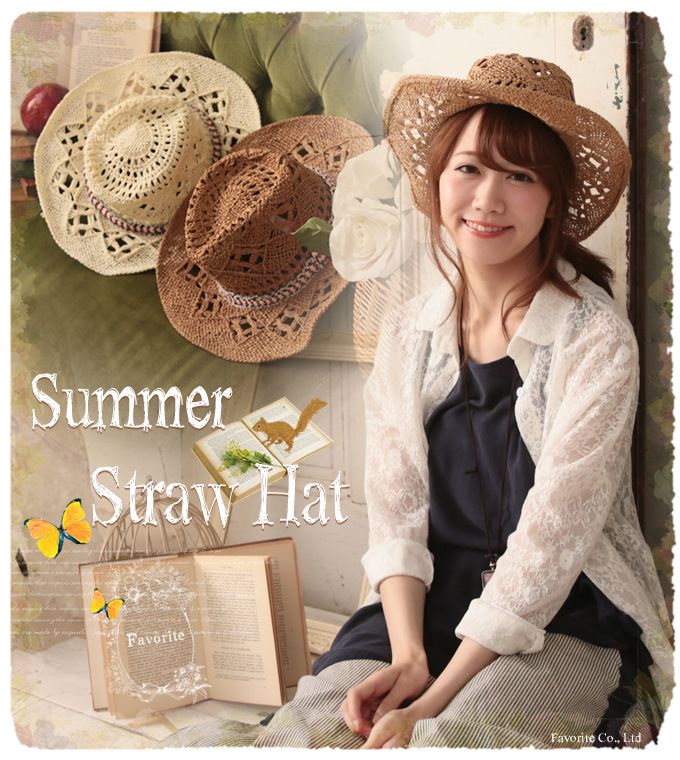 【ハット】春 夏 キャラル アイボリー 麦わら 帽子 さらりとかぶっただけでオシャレさんに変身*模様が綺麗なハット【7月上旬予約開始】【spring】【0】【1123】【0117】