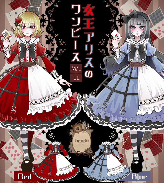 ワンピース ミディアム丈 アシンメトリー セーラー襟 エプロン ハーネス レースアップ ハート ゴスロリ*Favoriteオリジナル*女王アリスのワンピース【2023年8月下旬予約開始】