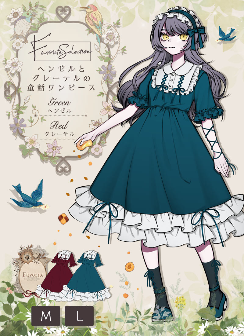 ワンピース レース フリル レースアップ リボン 森ガール 半袖 襟 ナチュラル 童話*Favorite Selection*ヘンゼルとグレーテルの童話ワンピース.+*【2024年4月上旬予約開始】